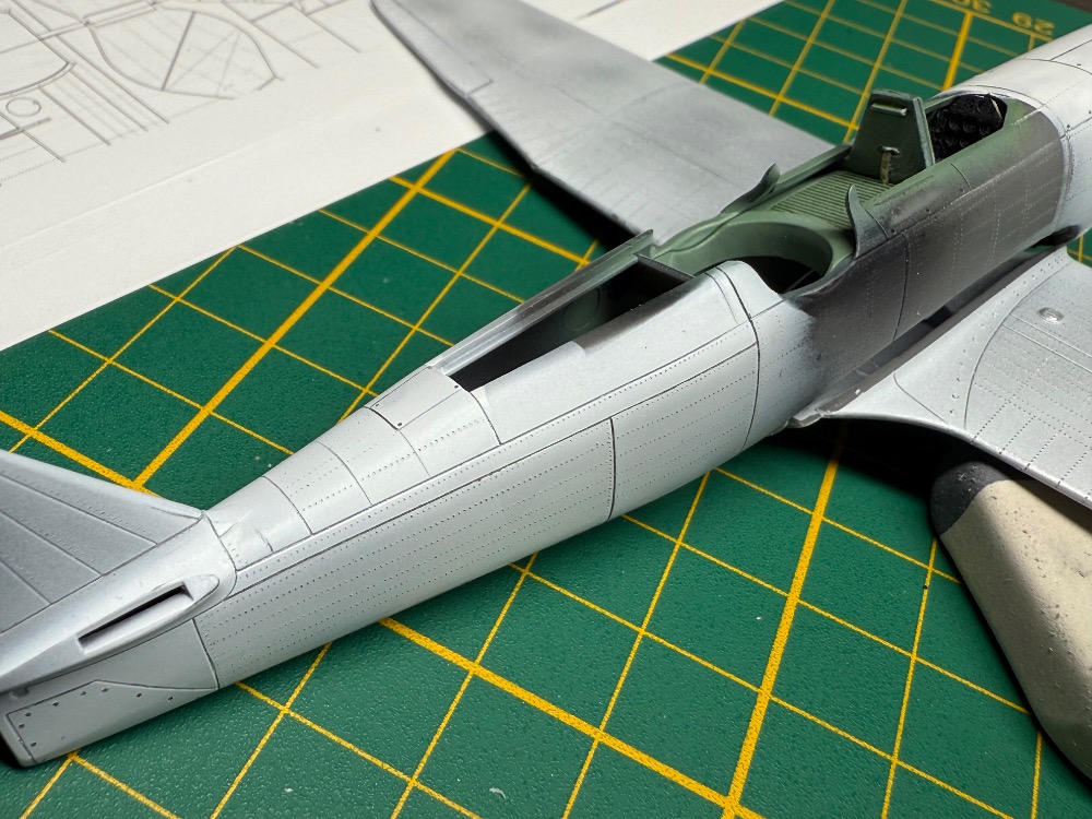 Aktuálně slepený trup a křídla. Čeká mě broušeníčko a obnovení rytí. :(