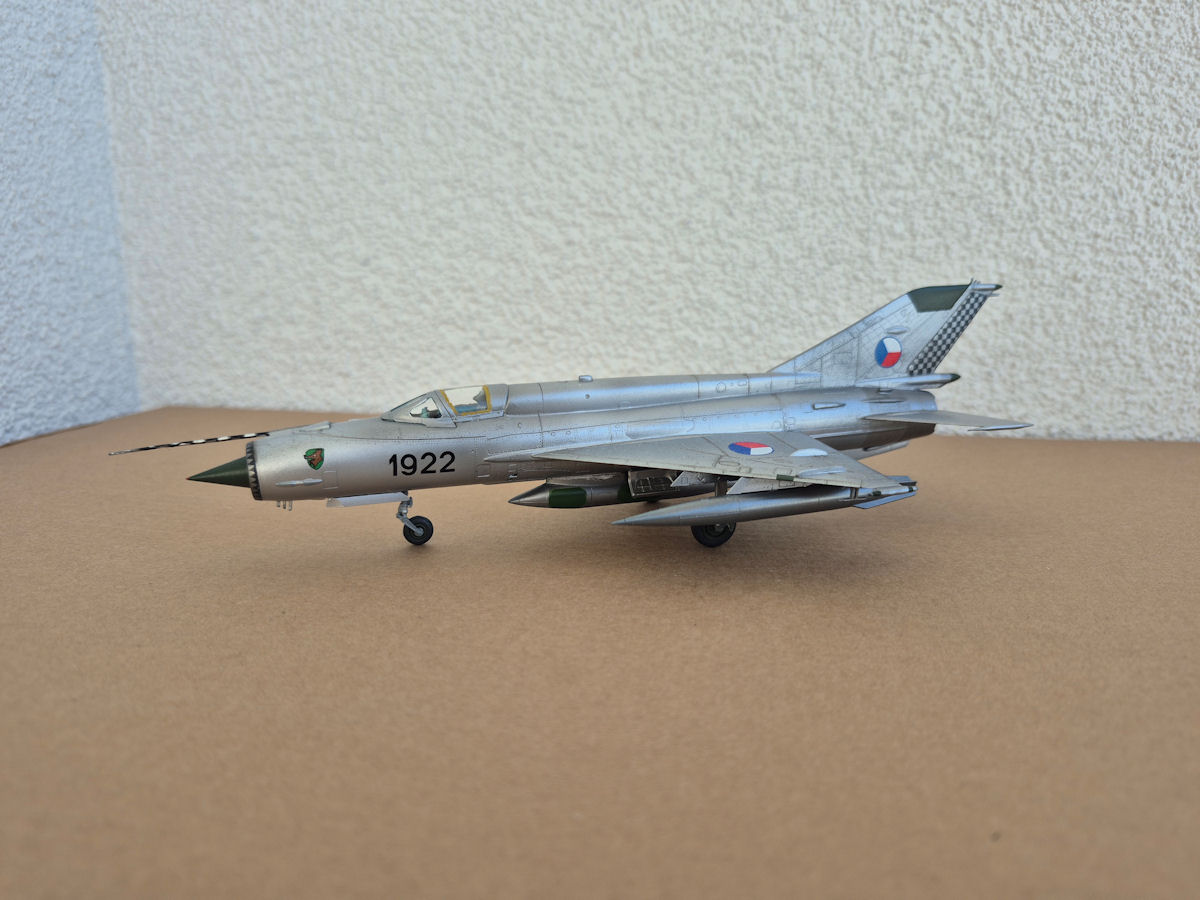 a náš MiG-21R (kostičky a trojúhelníčky jsou staré, nezežloutlé obtisky OTK Hradíšťko, s vodičkami si kupodivu rozuměly)