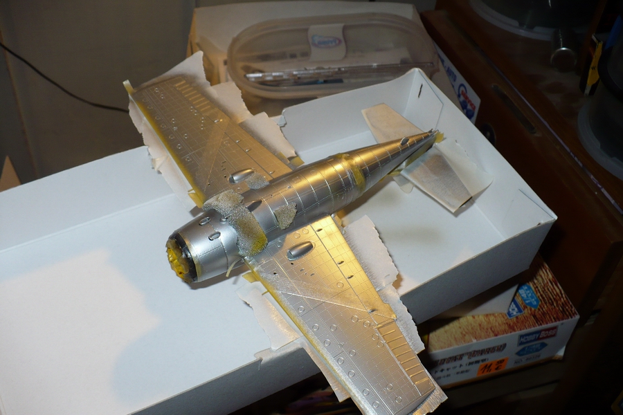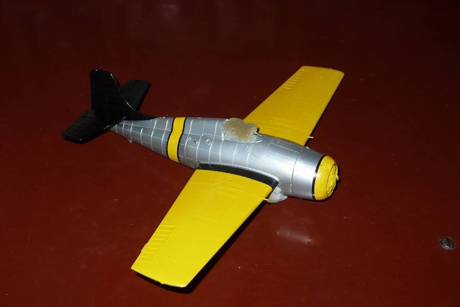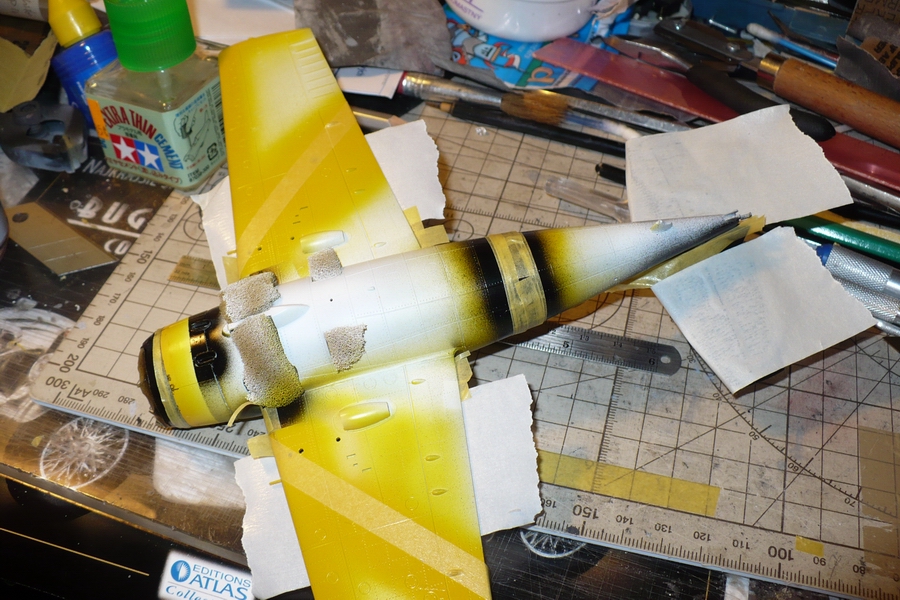 včera sa ku mne dostala konečne žltá na krídla tak dnes sa makalo. vid foto. dnešný konečný stav je farby sú nafúkané. zajtra by som chcel opraviť zopár prasačiniek a mohol by som dávať dekále. kedže som sa bál velkých dekálov na oblúkoch tak som čo sa dalo nastriekal.