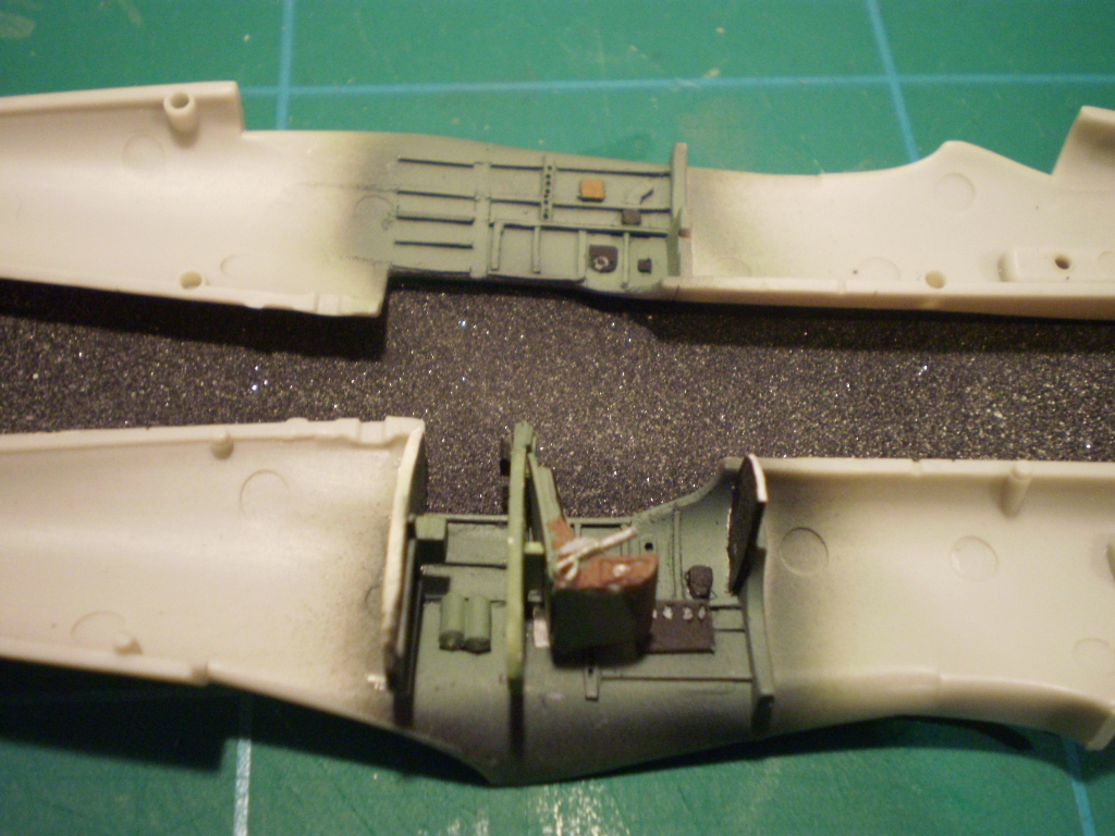 Tak od minula trochu progres. Keďže ten Airfix má v kokpite prázdno a použijem prekryt od Pavly určený pre gawu (má boky zadnej časti prekrytu stiahnuté až na úroveň spodnej hrany odsúvacej časti), kde aj keď bude zatvorený, bude sa dať dosť vidieť dovnútra, tak som tam niečo málo doplnil. Sedačka je rezinová tiež od Pavly, ostatné vlastná výroba.Zabudol som vyfotiť konštrukciu, na ktorej sú prichytené pedále riadenia a knipel a trup som už uzavrel. Urobil som ho tiež nanovo, podľa modelu spitu Mk.I, tiež od fixu. Nevadí odfotím ho nabudúce, mám v pláne ešte aspoň dve "deviatky" od fixu.