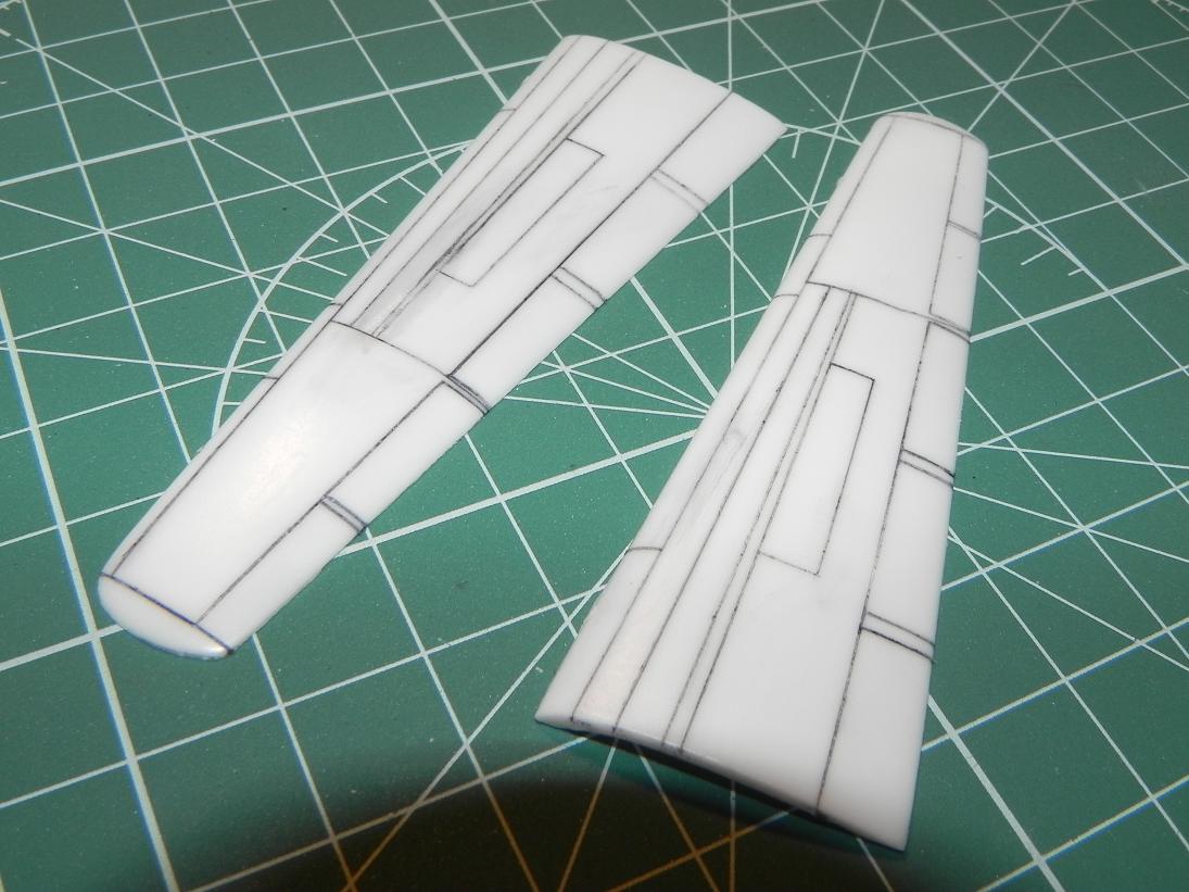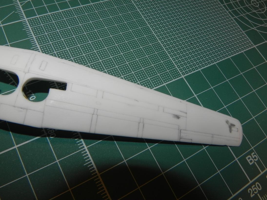 Tak začínáme tak očištěné díly zabroušeno přeryto... na pravé straně ocasu chyběla jedna linka tak jsem jí musel dorýt... jinak zatím žádný závažný problém...