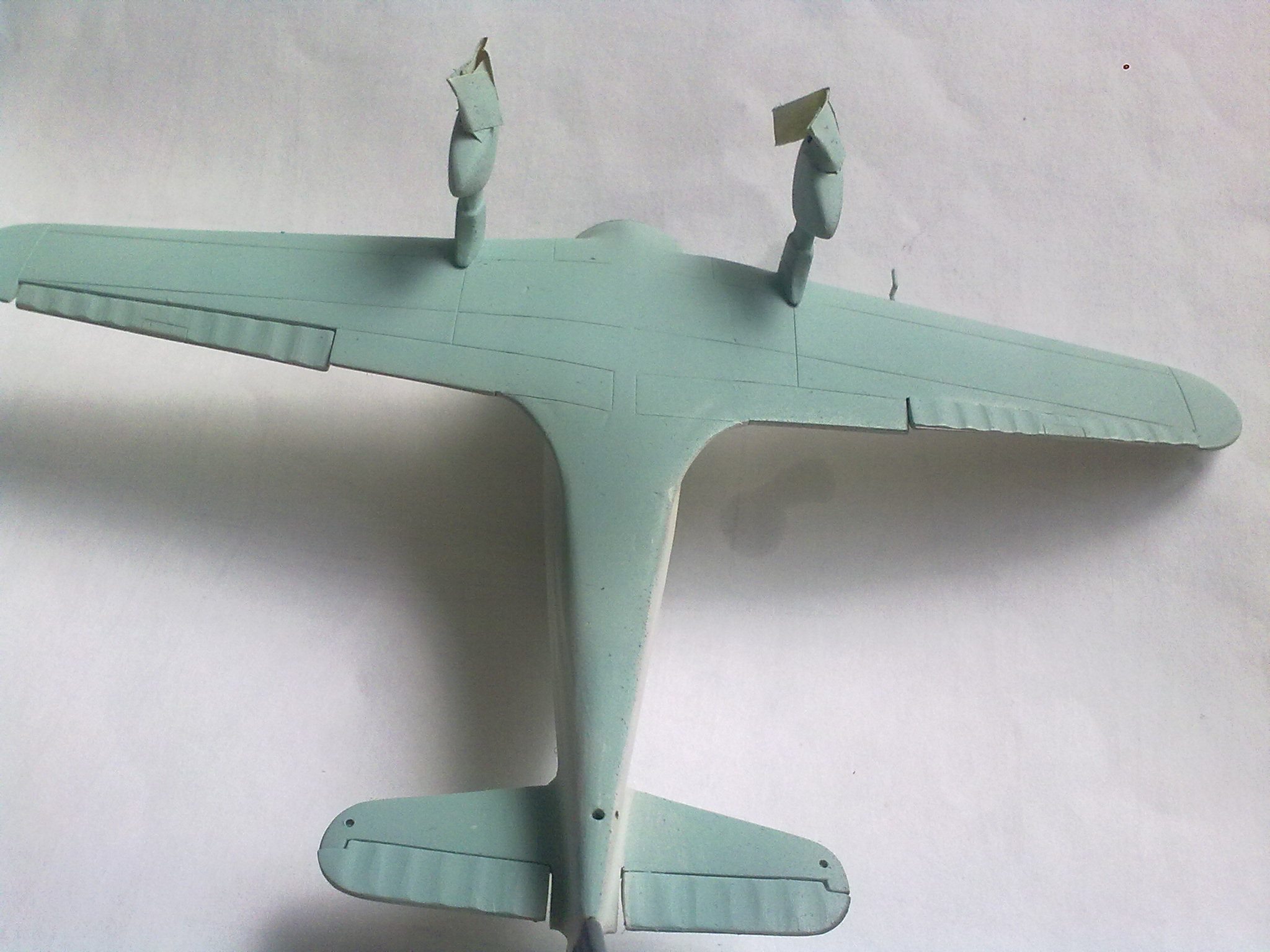 Ocasní plochy a trup zespoda by chtel dodelat, vidím i na fotkách schody, to není dobře.