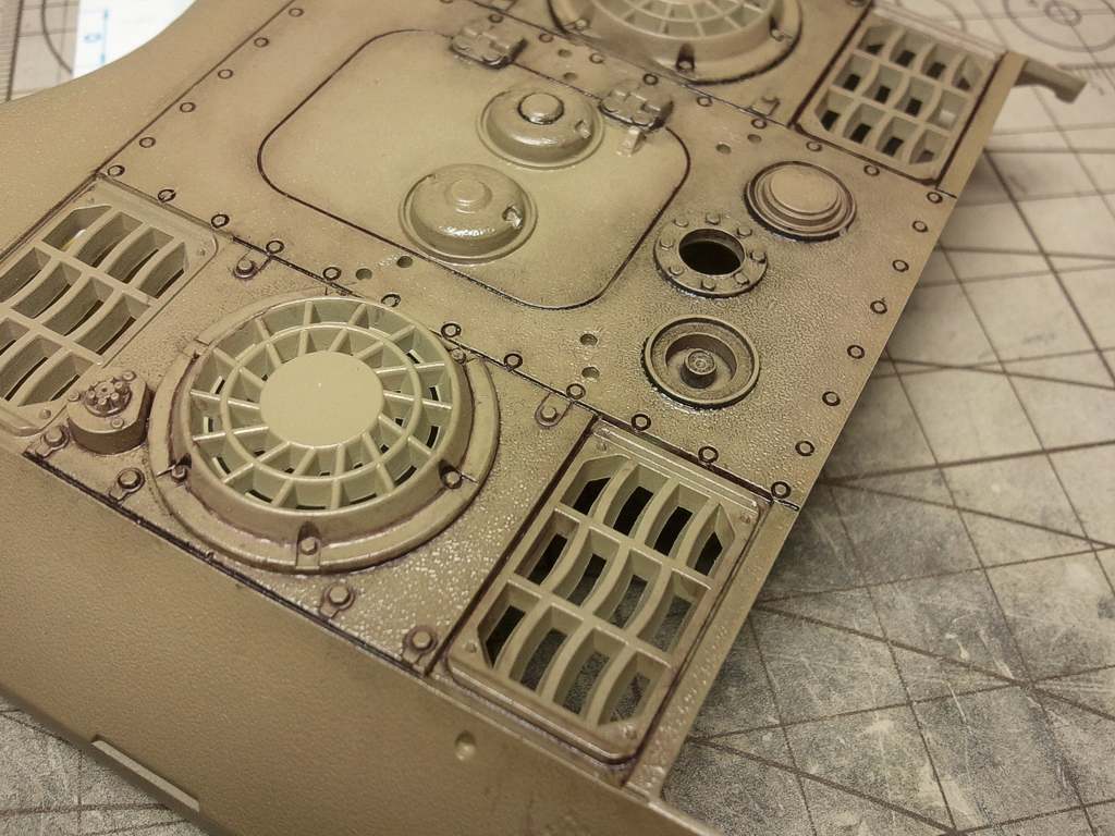 Tak jsem zakoupil enamelove washe od SIRAHOBBY a vyzkousel je. Na fotkach vidite vysledek po pouziti poustniho(do hneda) a tmaveho washe( cerny). Dela se nim dobre,,staci dobre prokarbovat lahvicku a pak na leskly nebo na polomatny povrch nanest na mista kam potrebujeme spicatym stetce a necham chvilku zasnout. Pokud trosku vytecou ci zatecou jinam, tak stetcem namocenym v redidle (white spirit nebo enamalove redidlo od Tamky) se dobre setrou.Huste jsou dost, daji se i naredit, pokud potrebujeme vytvorit slabsi efekt. Na zelene oznacene plochy jsem jako podklad pouzil leskly lak Sidolux a na cervene pololesk ze Sidoluxu a matne baze Tamiya), z obou povrchu to slo dobre stetcem namocenem v redidle ocistit.Takze doporucuji.