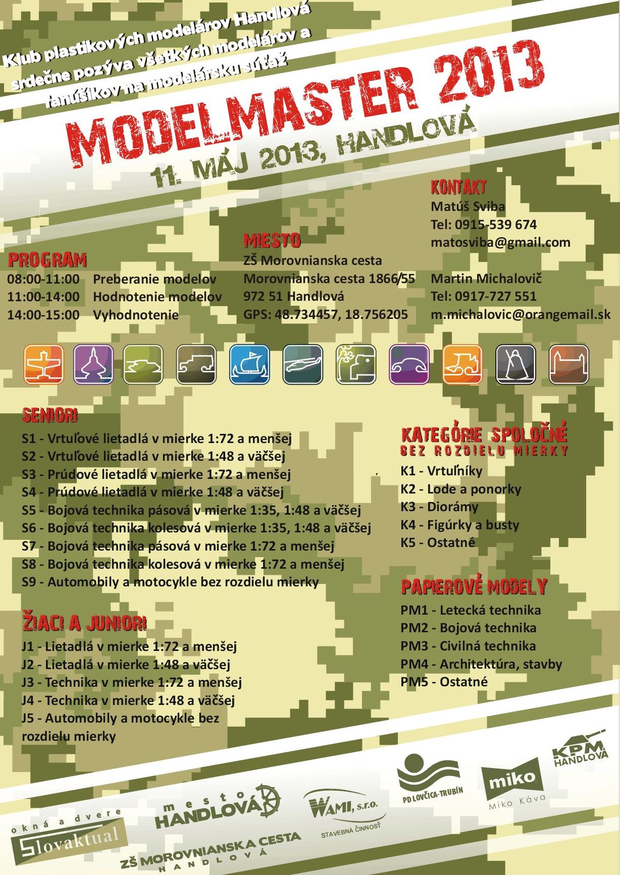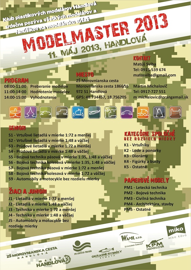Hlavným organizátorom je Matúš Sviba. Kontakt: 0915/539 674 alebo matosviba@gmail.com alebo modelmaster.handlova@gmail.com
