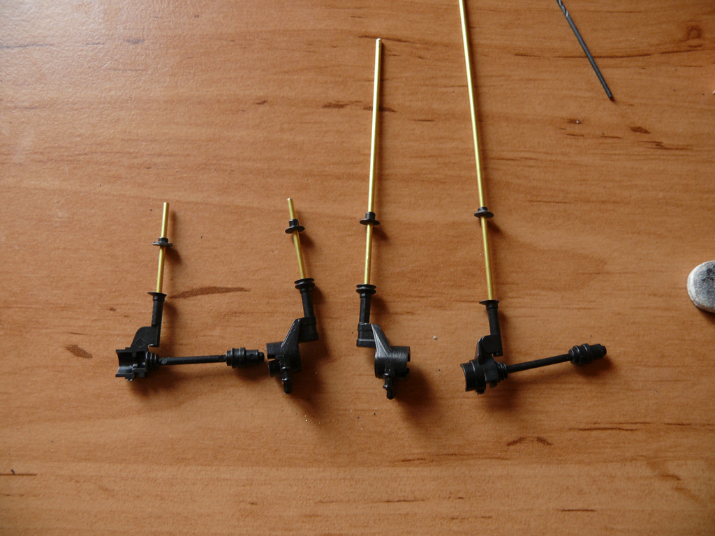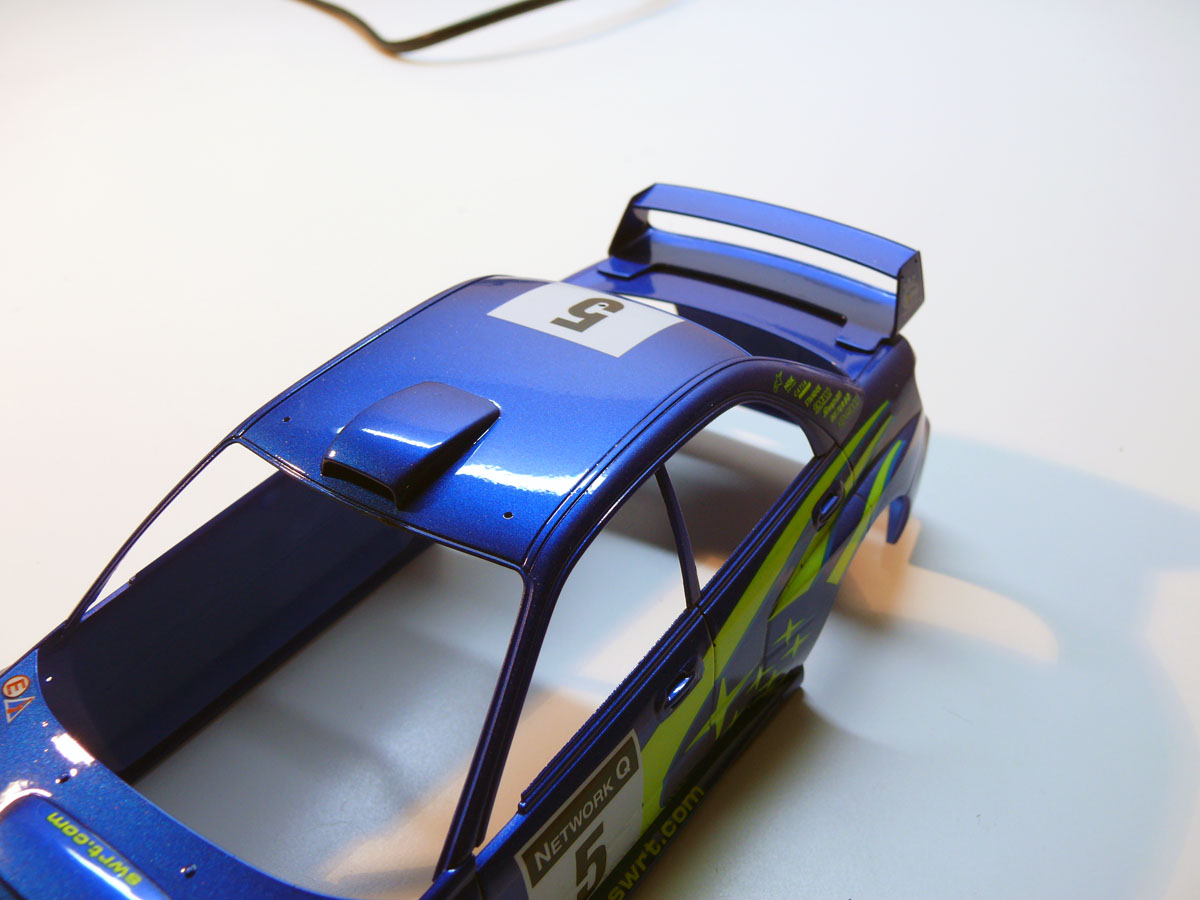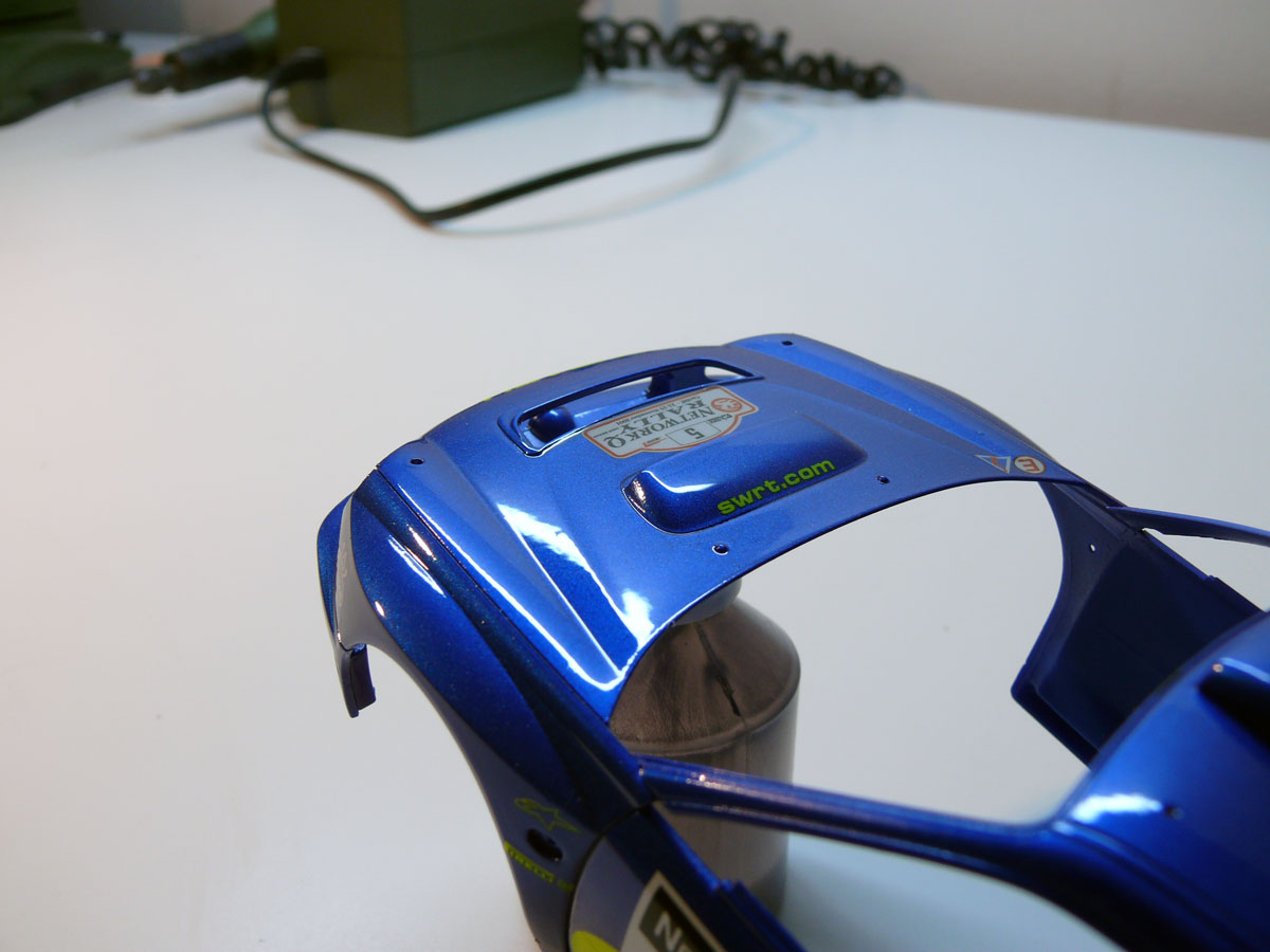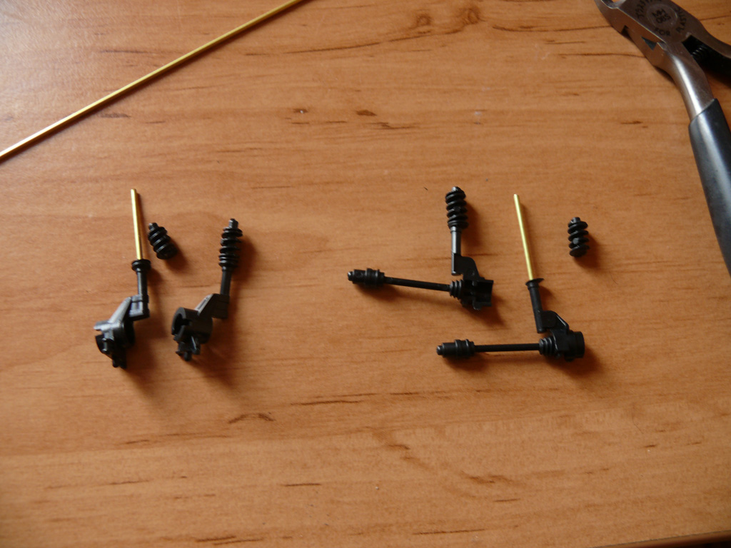 Tady je postup na tlumičích - přední budou trochu zmáčknutý a zadní malinko vysunutý: Další byla na řadě kastle - v barvě Zero Paints pro Imprezu - po prvních vrsvách laku (ještě ne 2K):