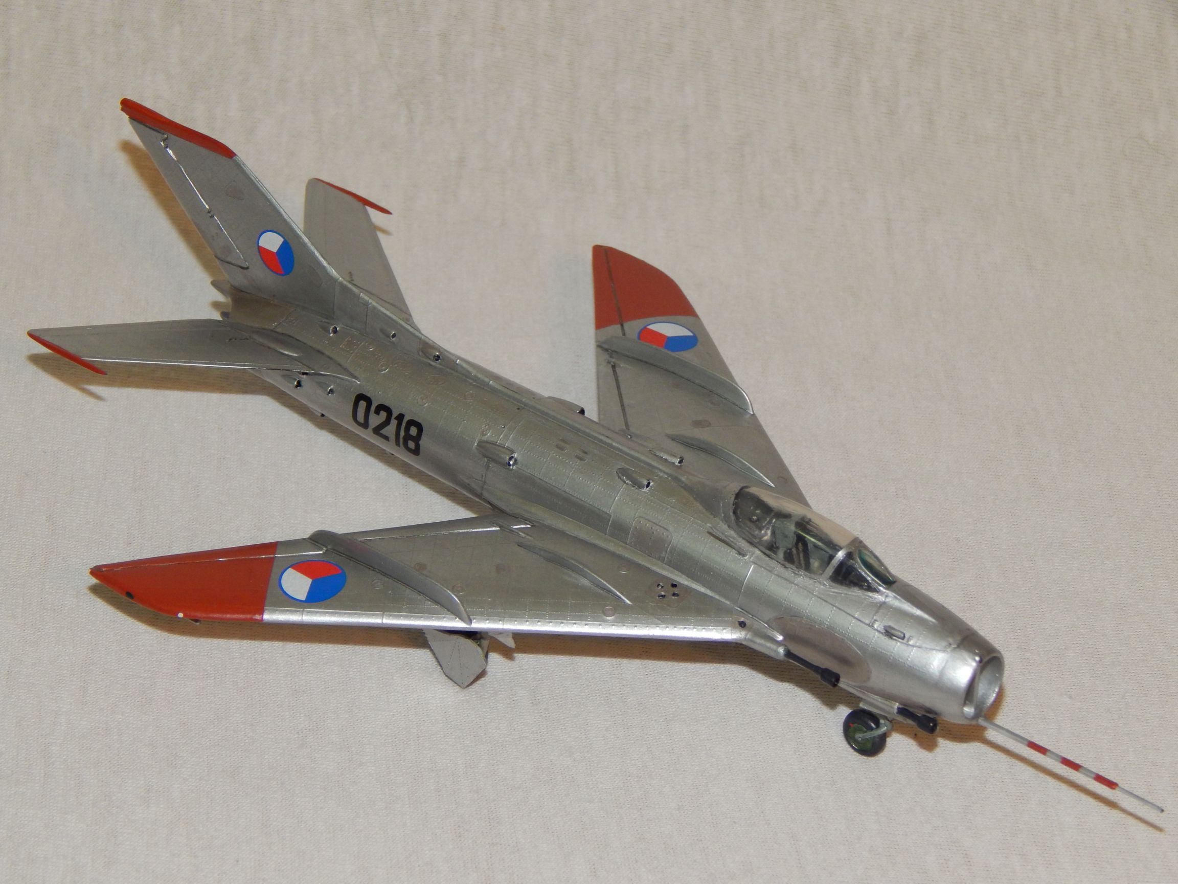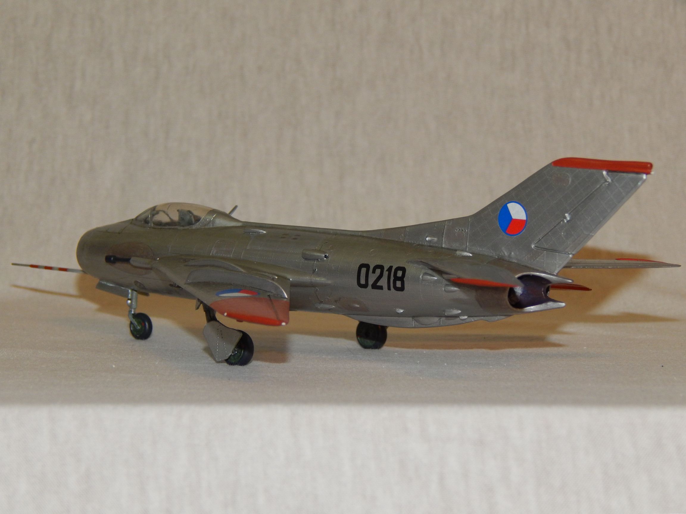 zatím poslední můj počin ze sklonku léta. Na můj vkus docela rychlostavba, slíbil jsem si, že ho dotlačím na výstavku Kopřivnických pohárů- což jsem splnil. Je to klasika z nejklasičtějších. Staré dobré KP, čtvrt kila tmelu, 1/4 kelímku od jogurtu (skrečnutý kokpit), odvrtané přisávací otvory, 12 malých espress, barvy Agama vodovky + štětec (jako vždy), původní obtisky (dobře zpracovatelné) a Sidolux na finále. Chci doplnit ještě chodníčky - a možná i podvěsy z krabičky. Jsou tam chyby, ale lépe mi to zkrátka nejde. Ale mě to baví!