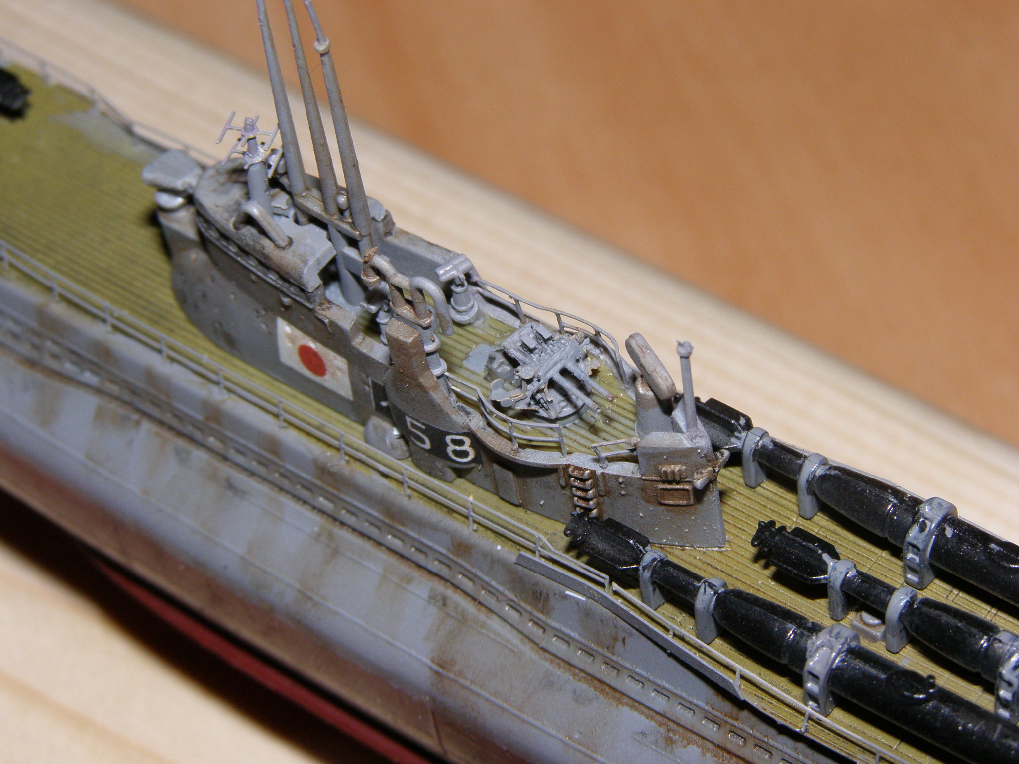Posledním kouskem, který rozšířil mou sbírku je japonská ponorka I-58 pozdního provedení. Stavba velmi pohodová, jediným doplňkem je dvojkanon na věži z produkce Veteran models, jinak z krabičky. Leptané doplňky součástí stavebnice.