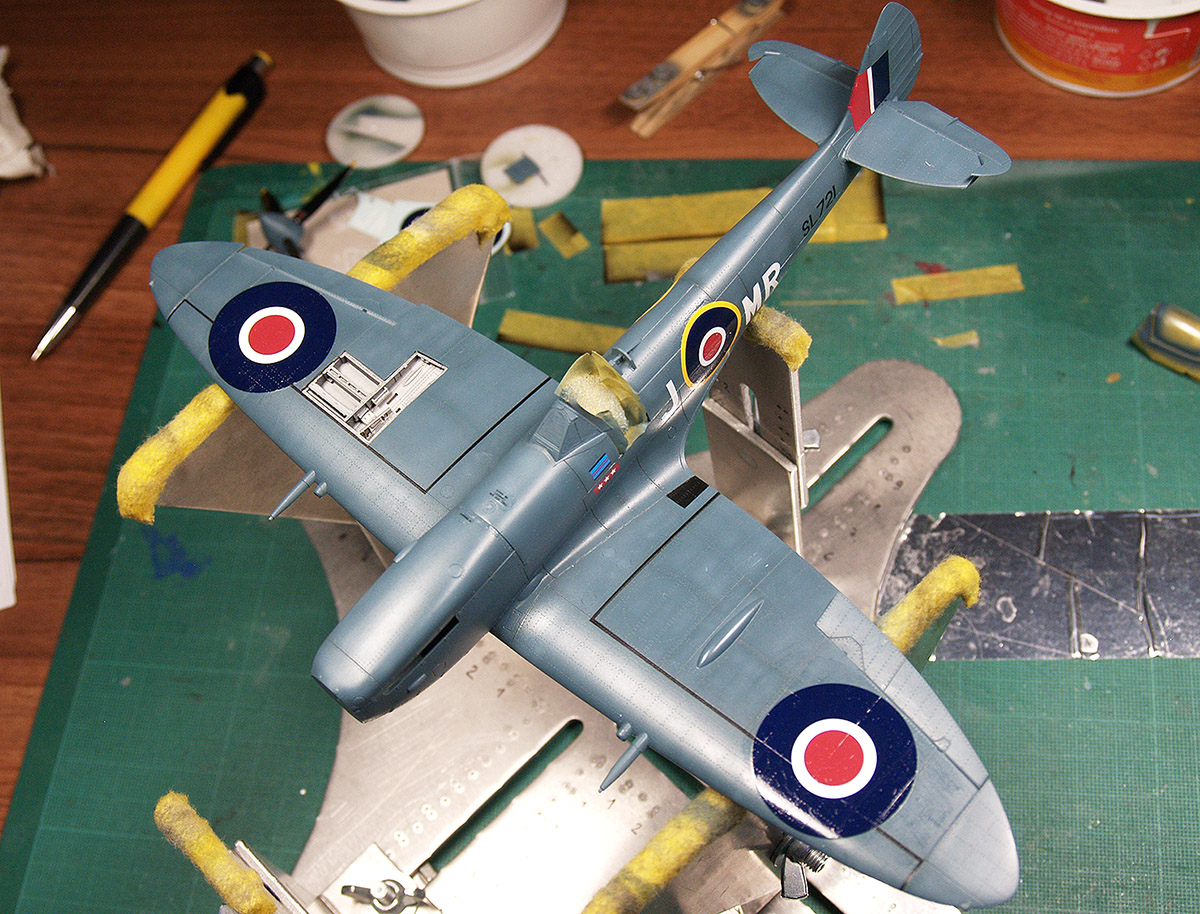 Už jsem letos sbouchl Corsaira (Birdcage, Tam 1/72) a rovnou začal Spita (XVI s nízkým hřbetem, Eda 1/48). Corsair ještě potřebuje lanko antény a pěkné fotky, Spit už je zavřený a větrám spoje (takže jsem rozvrtal ještě i stodevadesátku (A-3, Tam 1/72) :) Jsem nepoučitelný P2292937.JPG P2292938.JPG
