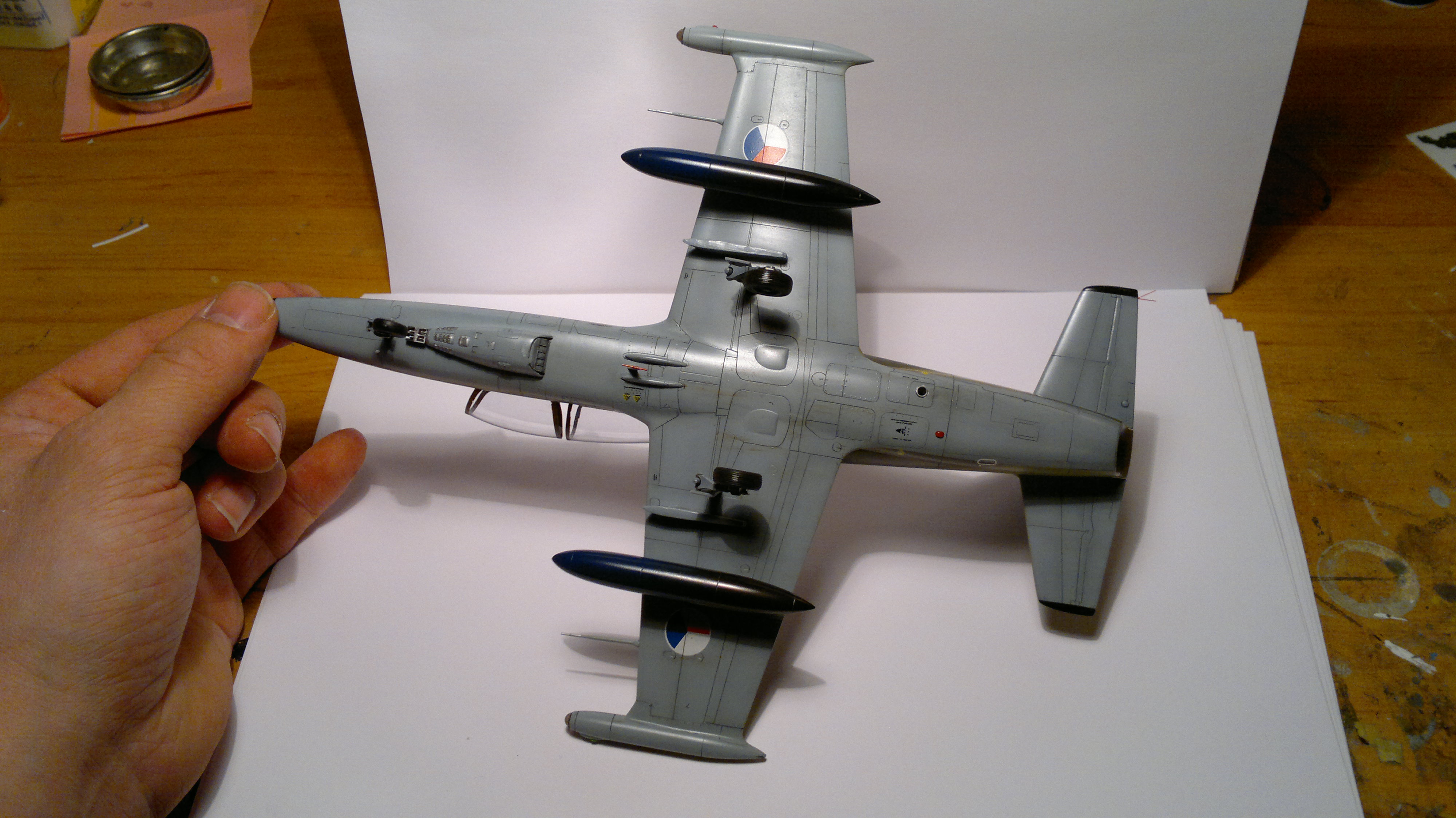 Dvě věci, poskozený (?) dekál na levé straně SOP a pak ty bílé plošky na sop. Příznám se, nějak mi vždycky unikly a teď jsem si myslel, že jsi tam zapoměl nějaký pomocný plast.-))