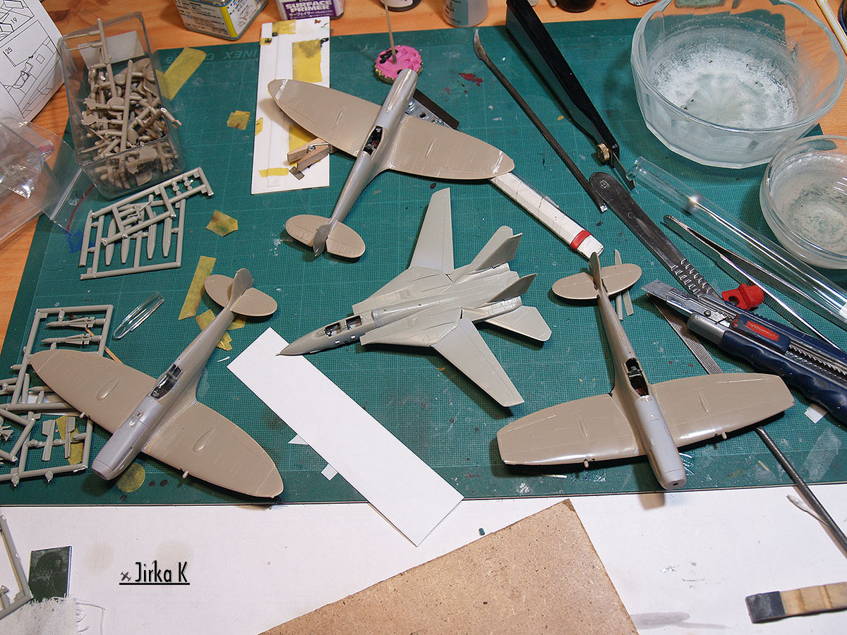 přemýšlím, co bude nejvhodnější, chci něco rychlého (to by mohl být Mustang a Sabre v NMF, 1/72), láká mě i Corsair se spuštěnými klapkami (1/72, když ale Tamiya je ideální na patlák...), jenže když se probírám krabící Founder Edition s MiGem-21 (1/48), tak to vypadá hodně luxusně! Taky tu už delší dobu zrají Lavočky a Fokkery (dual Comba 1/72) a spousta dalšího, asi to nějak náhodně vylosuji.