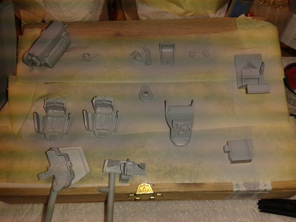No něco stím ještě provedu nějaký zesvětlení pak panely čudlíky budíčky a tak.. a pak nějakej drybrush. JJ poloviny jen na sucho.