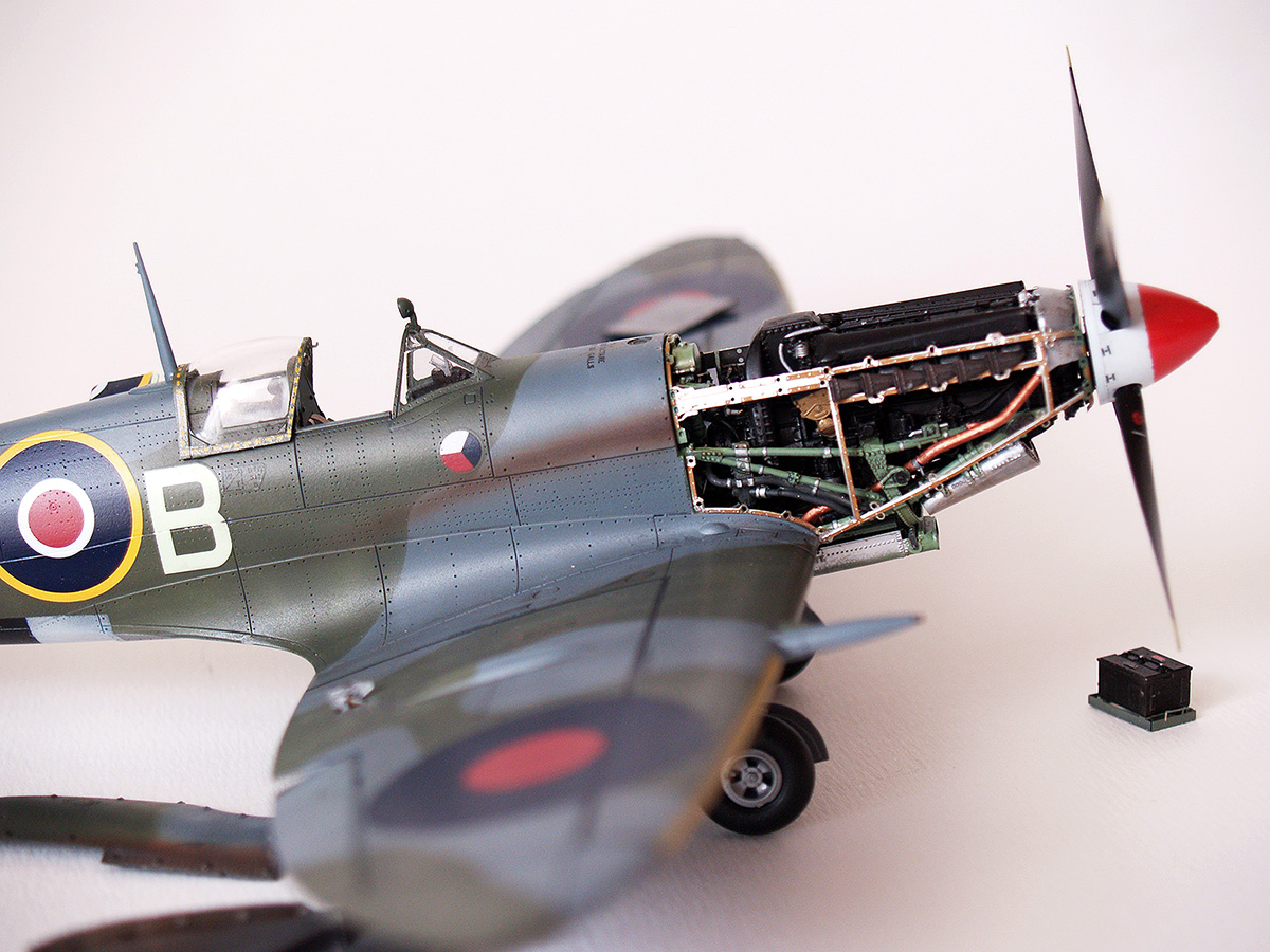 Spit Mk.XVI, 1/48 Eduard + BigSinn Advanced Čekají mě ještě drobné úpravy patiny a pár doteků štětcem (na kleci kolem motoru, signálním světle na břiše ap.).