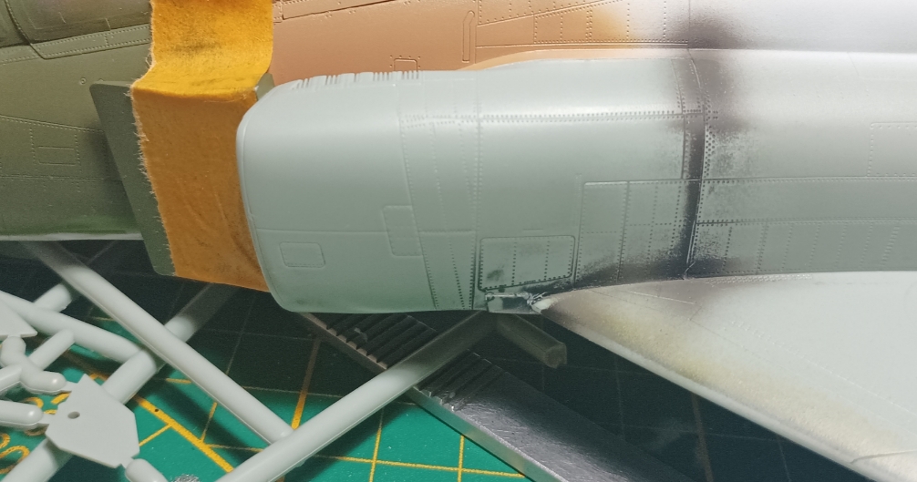Tak jo. Trochu hrubé síly, malinko tmelu a jsou tam. Ještě jsem vyměnil připravené výškovky, protože návod chybně nabádá k použití slotových a doplnil vyztužení podle fotky z muzea.