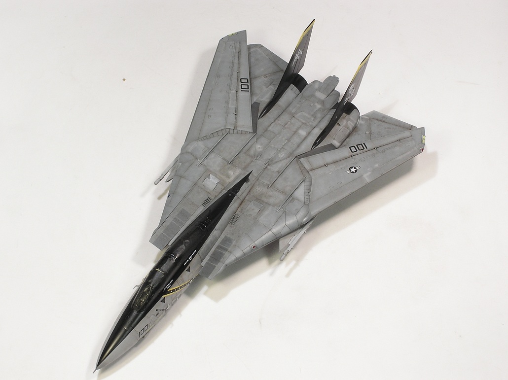 Připadá mi ten worn effect příliš moc rozlezlej. Přece jen to byly aktivně používaný mašiny, spíš na nich byly znát čmouhy po opravách barvy na krycích panelech, a po kontrolách koroze. Jo a aspoň na Phantomech Luftwaffe, které byly stříkané obdobou TPS, hodně bylo vidět stopy po smeknuté podrážce. Předpokládám, že ani Tomcaty se tomuto neubránily.