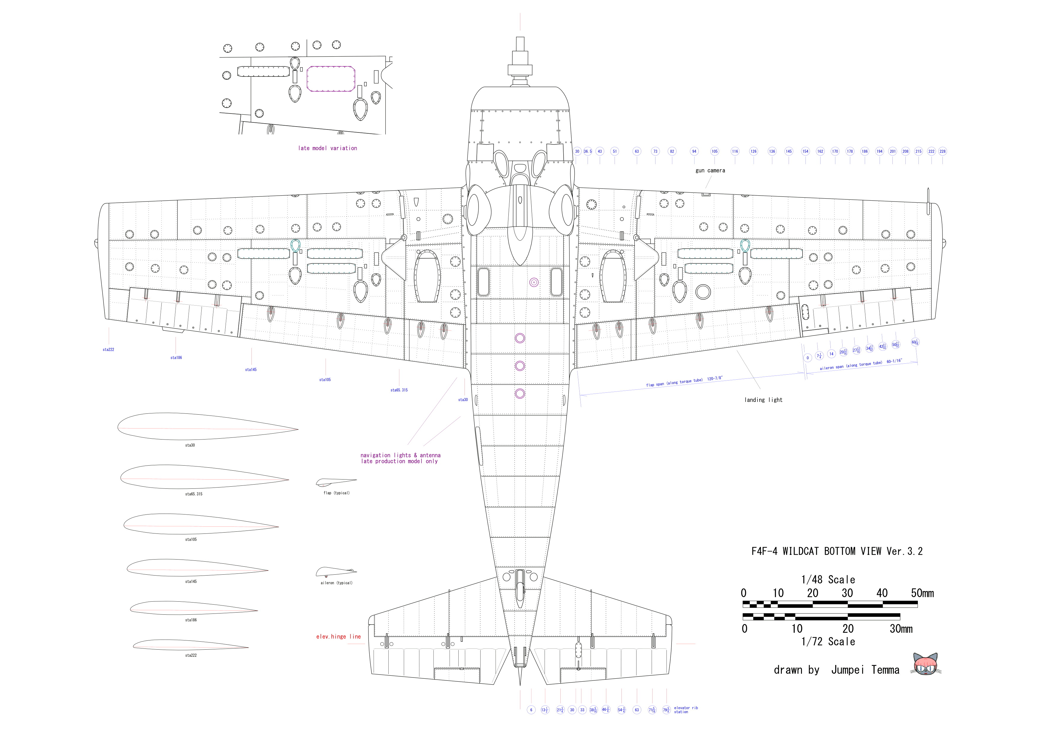 Aircraft-scale-drawing-of-a-Grumman-F4F-4-Wildcat-Bottom-View-1.48-Scale-drawn-by-J-Temma-0A.jpg