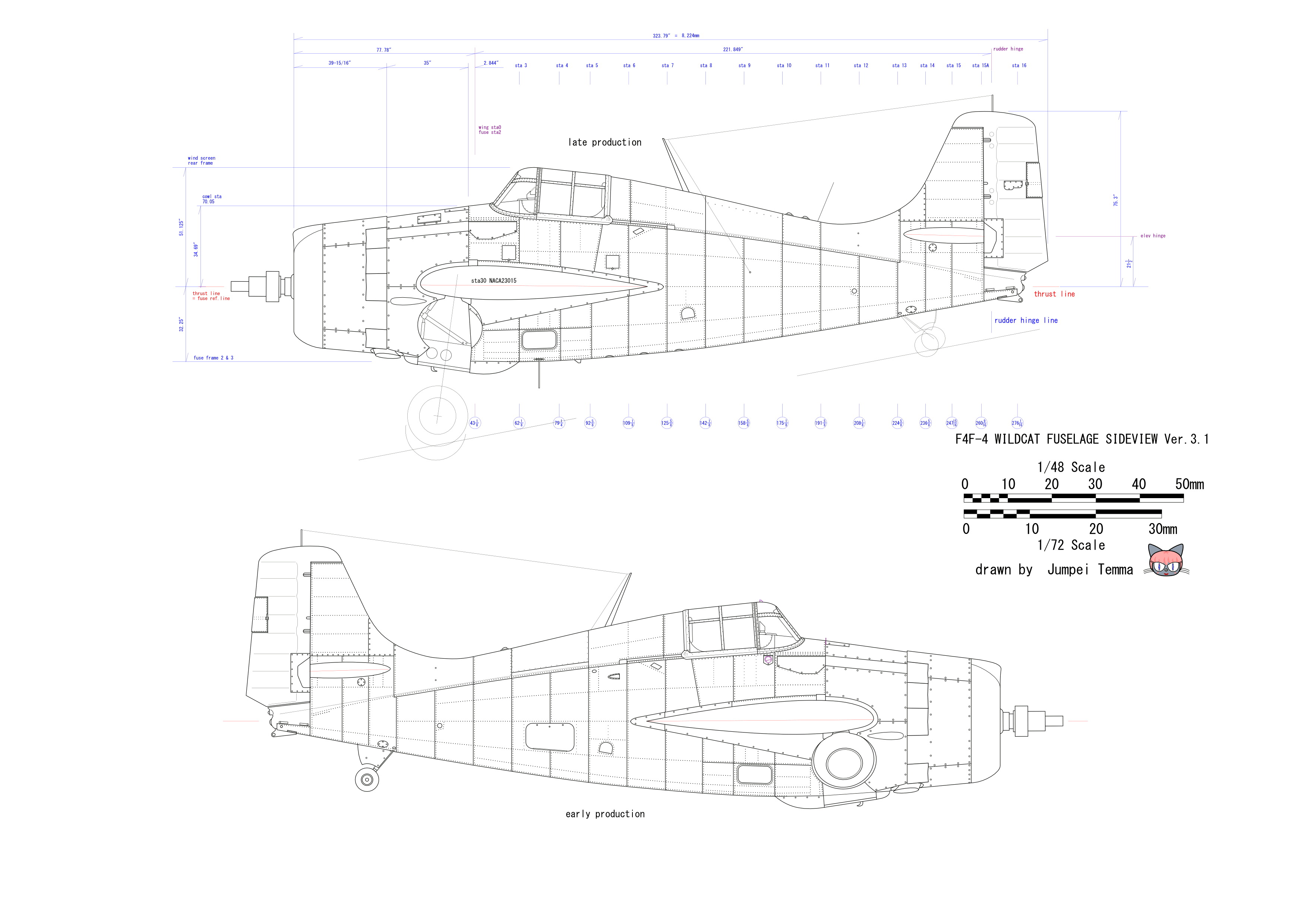 Aircraft-scale-drawing-of-a-Grumman-F4F-4-Wildcat-Side-View-1.48-Scale-drawn-by-J-Temma-0A.jpg