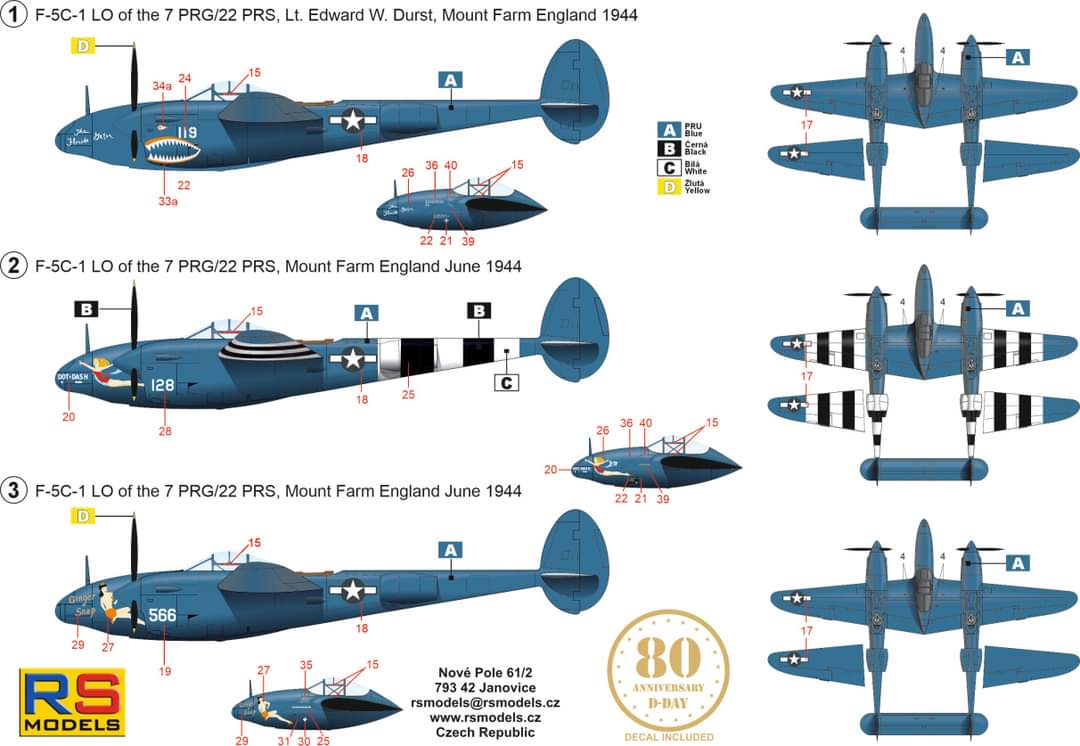 Fotoprůzkumný Lightningy+P-38J od RS models 1/72 na květen. Měl by to být výlisek Academy P-38J+ konvertní díly od RS models