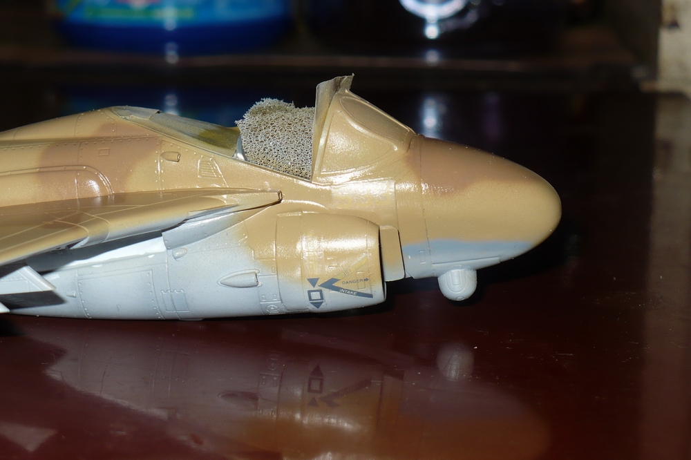 strašne sa to zle fotí. rozdiel je viac vidieť na bežnom svetle. ešte je to pred hypersolom. začal som začistovať podvozok a ostatné drobnosti. riešim dilemu či dať popisky na spodok trupu (na šedú)