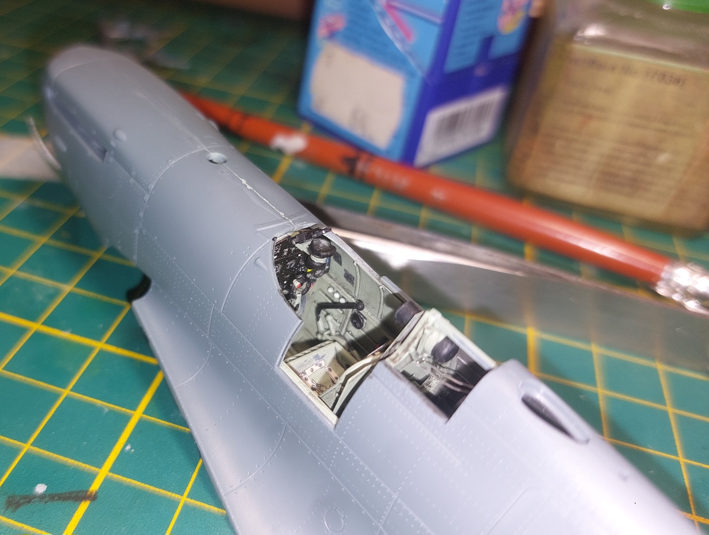 Tak jsem neodolal slevám u MN a koupil Spita ve čtvrtce. No, je to krásný. Já už s tímhle měřítkem koketoval dřív, ale kromě trenéra, který je v pokročilé fázi v šuplíku, vždycky všechno skončilo v koši. A to nebyly nějaký ludry, ale solidní edí věci. Déčko mustang, 109 G-6 a fokouš. No, vždycky to ztroskotalo na barvení, já měl ještě enamelky. Tak jsem měl z těch 1/48 trošku trauma. A protože už na ty drobky začínám blbě vidět, tak to zkusím ještě naposled, teď už s laquerama. Zatím dobrý, kokpit v kupě a uvidíme. Jsem se nějak rozkecal, tak foto zavřeného trupu.