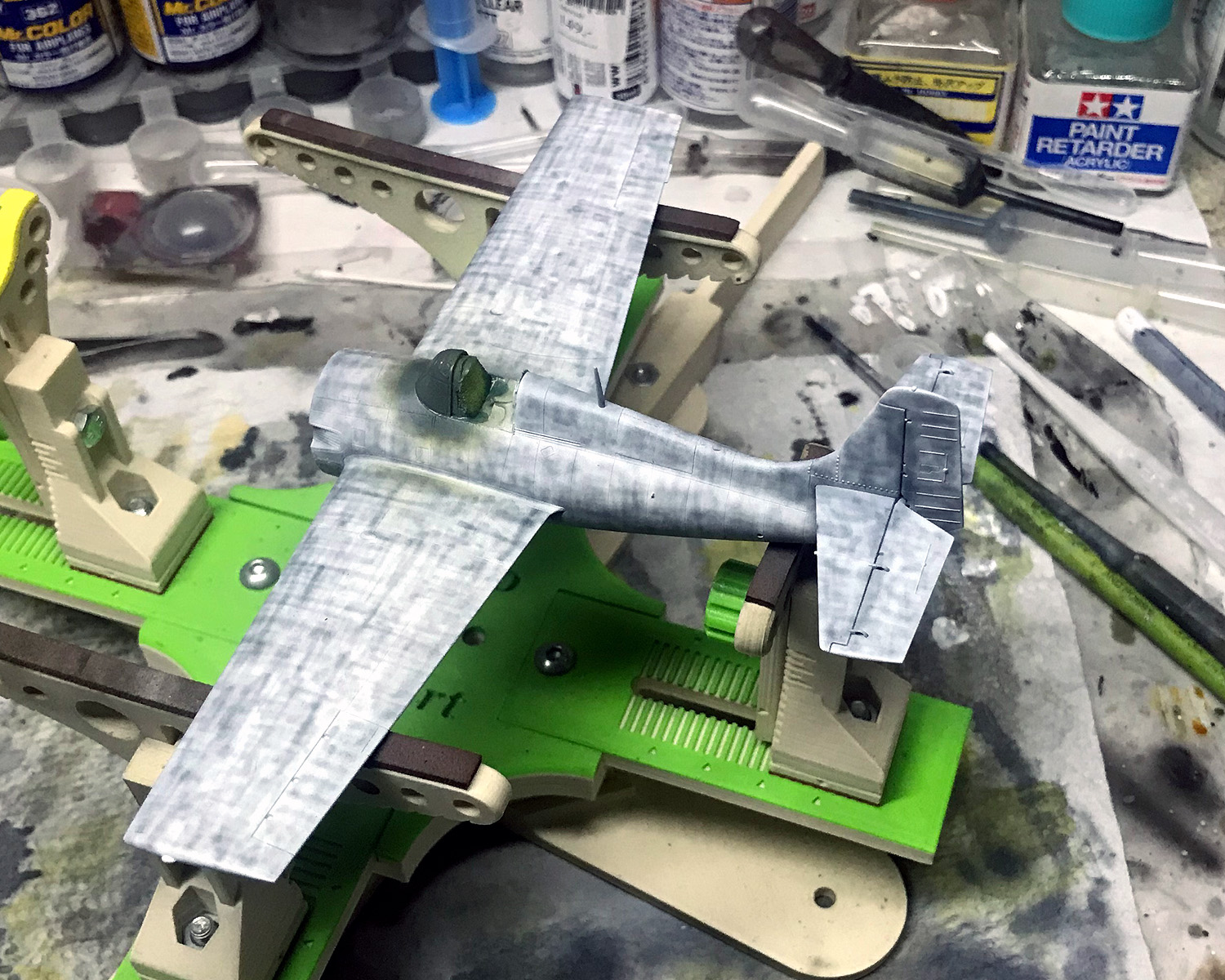 Na válce čistý hliník (válce jsem nemaskoval). Na vše černý wash + matný lak. Nakonec jsem brusným plátnem přejel po vršcích válců.