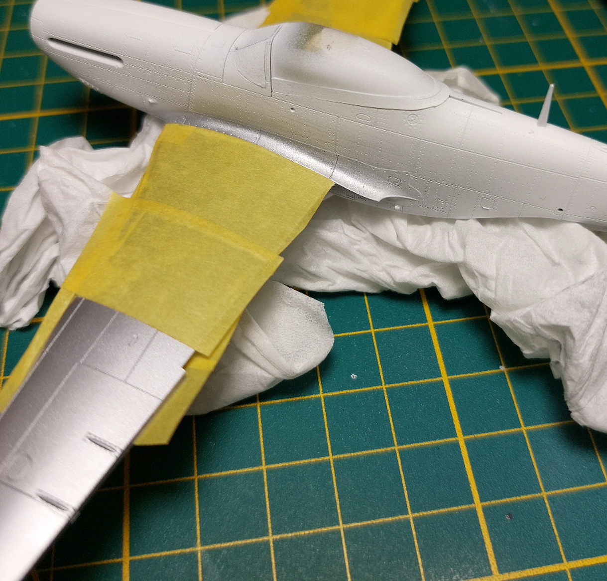 Křídlo gunze C08 na leštěný surf. Vymaskováno a jedeme na trup. SM208 super duralumin.