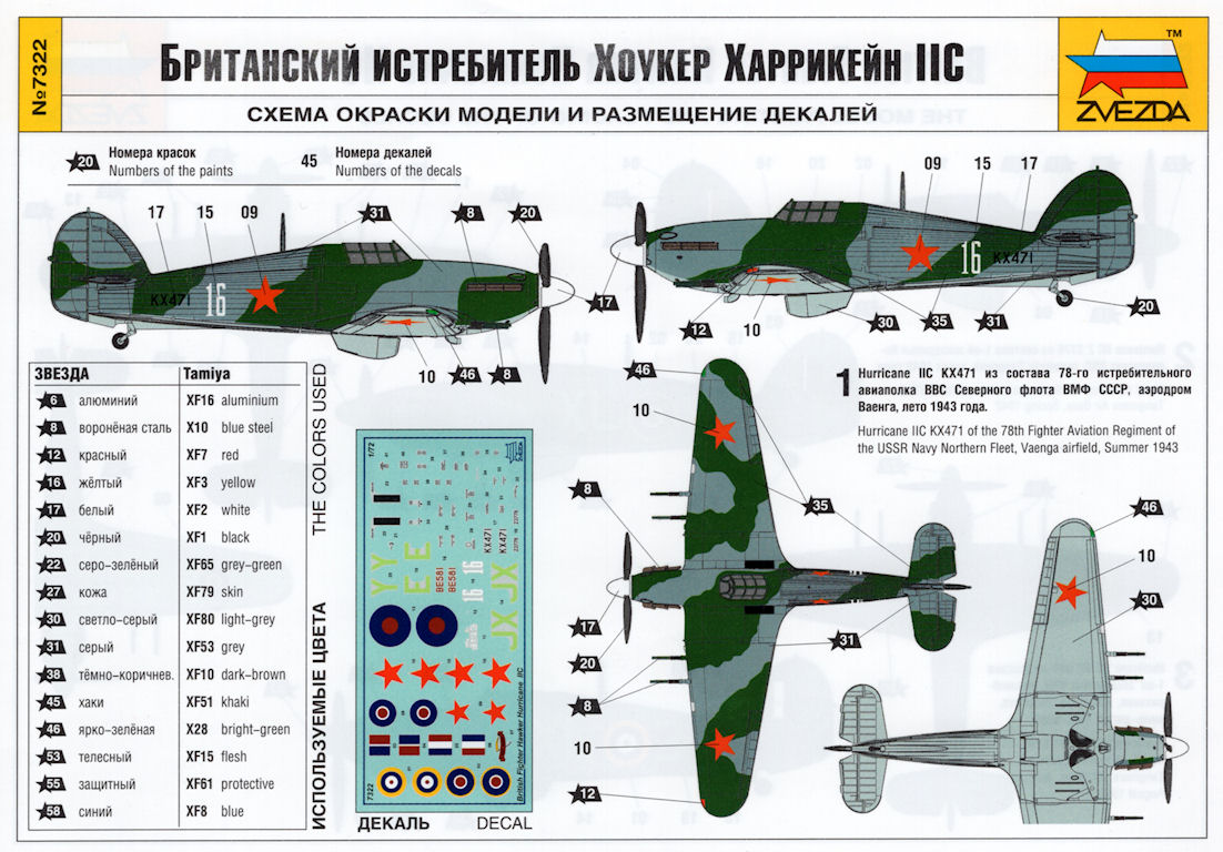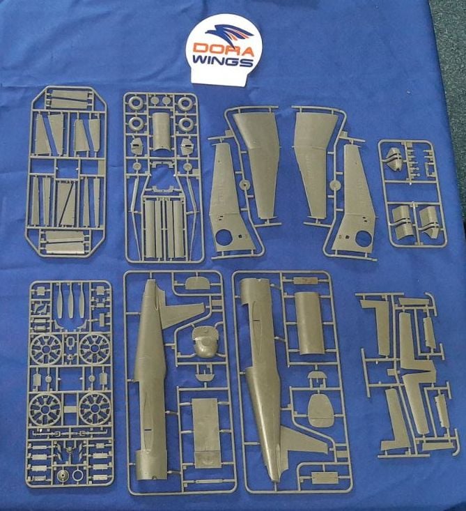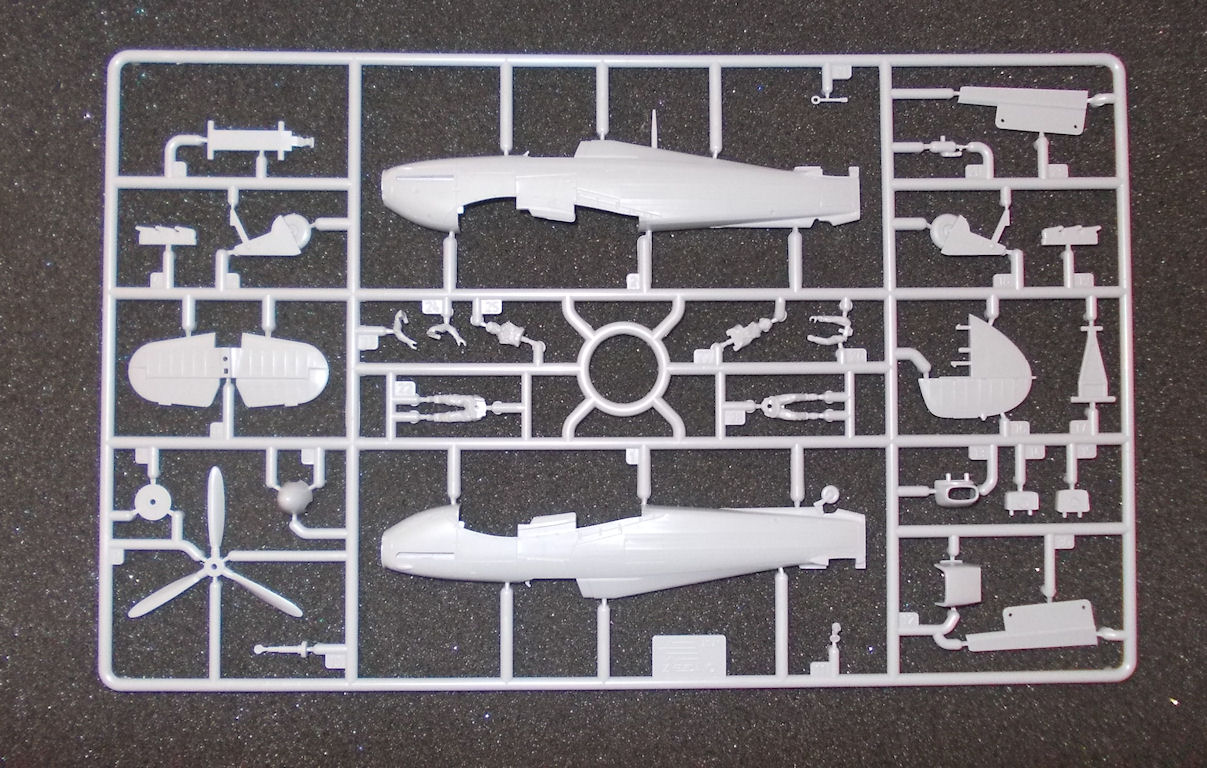 Krabička obsahuje zbarvení na dva britské a jeden sovětský stroj. Výlisky samotné jsou bez propadlin, rytí přiměřené. Zamrzí stopy po vyhazovačích v šachtách a na krytech podvozku, tady se budou nepohodlně opravovat. Kanóny jsou odstříknuty dohromady s křídlem a náběžná hrana přechází až do spodního křídla, i tak je potřeba přebrousit náběžku v pomyslné polovině, je tam stopa po dělící rovině. Na spodním dílu křídla jsou otvory pro vypadávání nábojnic jen naznačené rytím. Kola jsou se vzorkem a zase ta dělící rovina...