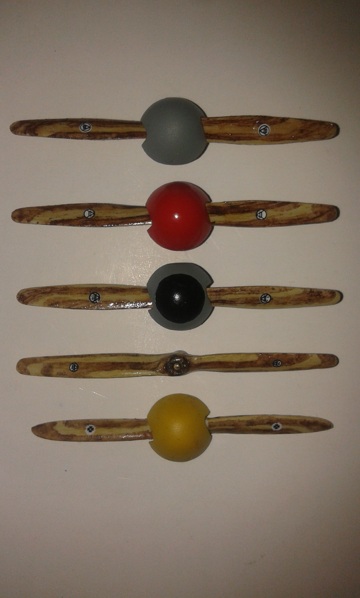 Hotové vrtule. Když už má Marconay odkrytovaný motor, dostane vrtuli se sejmutým kuželem...