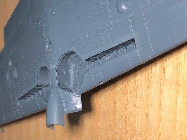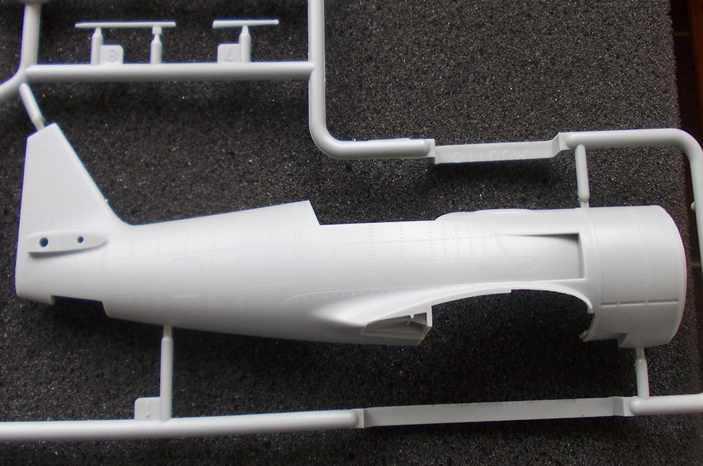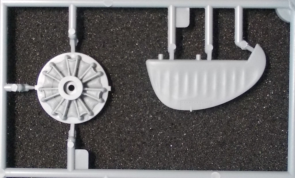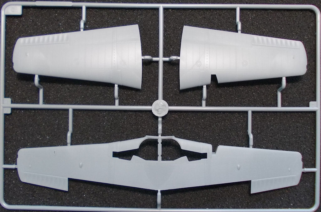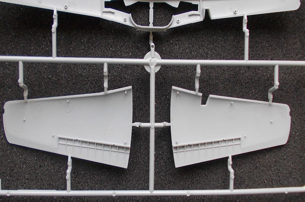 Snad je nýtování na trupu vidět. Motor je jen v reliéfu, stejně z něho moc vidět nebude, ale nepotěší to ty, co mají rádi motor odkrytovaný. Klapky mají uvnitř naznačenou konstrukci. Spodní díly klapek jsou ve dvojím provedení - s naznačenou vnitřní konstrukcí pro otevřené a bez konstrukce pro zavřené.