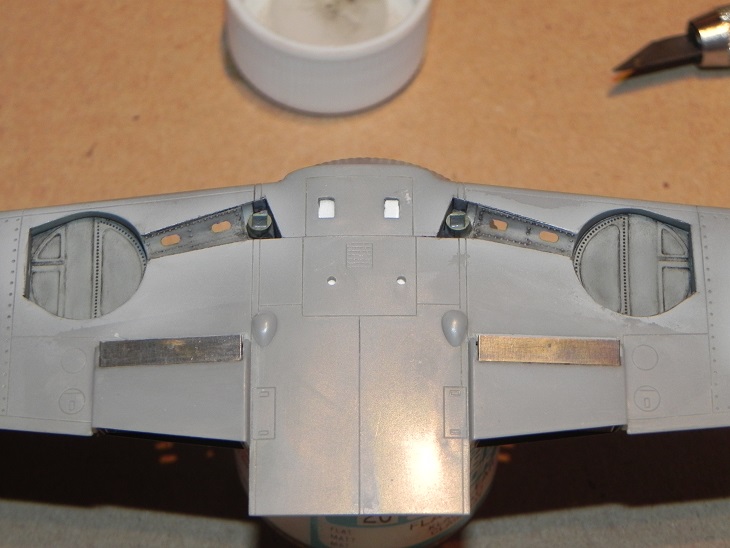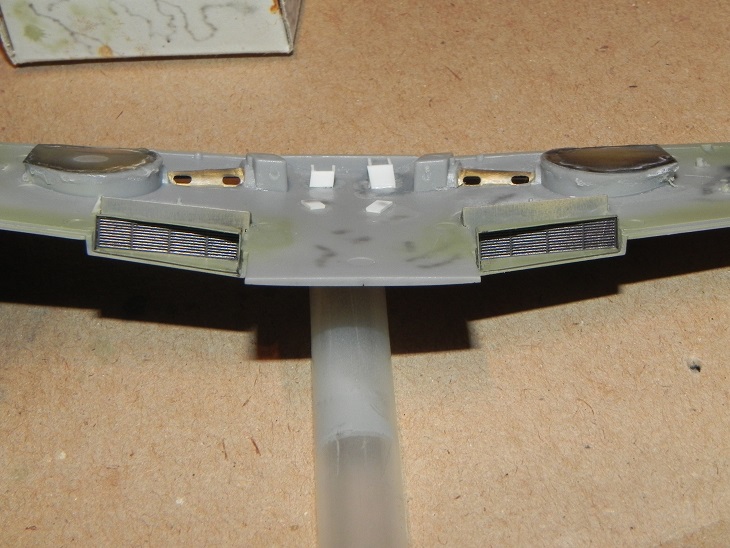 PŘEDEM říkám fotka je na pikaču !!! live to vypadá o něco lépe ..popravdě lept podlaha podvozku na stínování nic moc nemá to moc ostré hrany :-/ vnitřek barvy je RLM 76 i když trošku s tmavla zalakováno matnou protože tu barvu mám rád