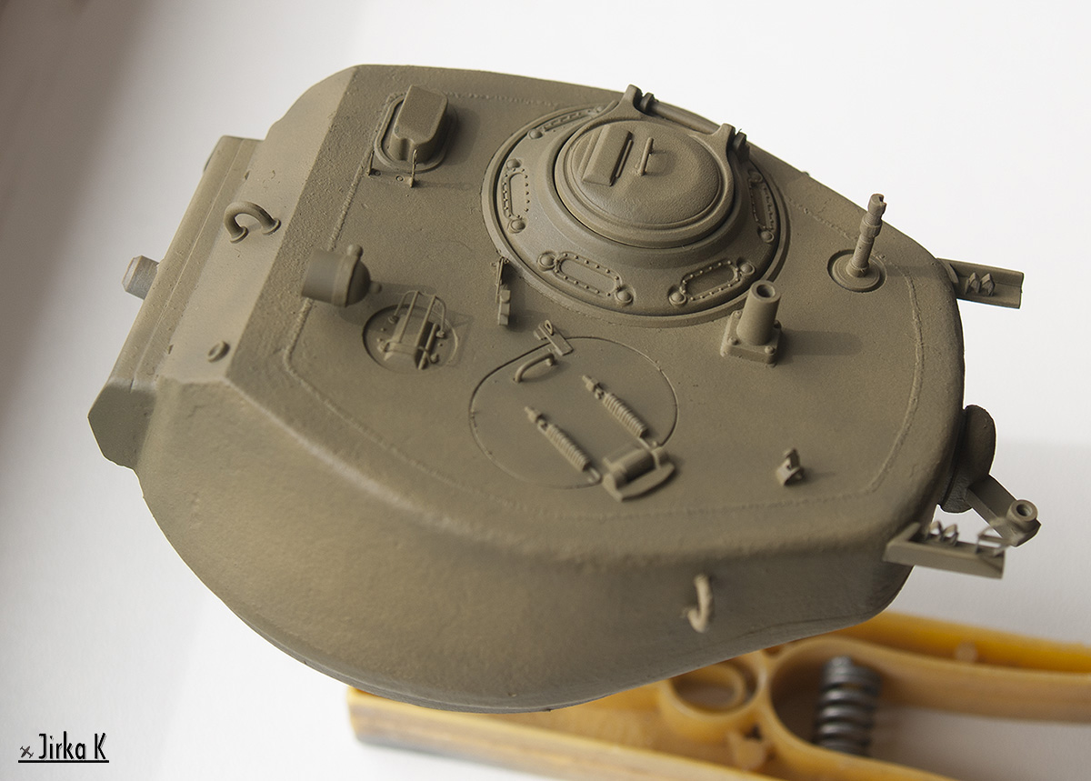 Test míchané barvy na věži: Napřed se mi nelíbila, ale na surfu a na denním světle nevypadá zle. Docela se na celý ten nekonečný proces úprav kamuflážní barvy těším