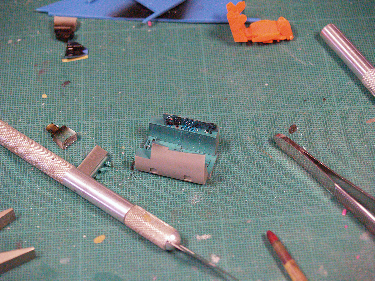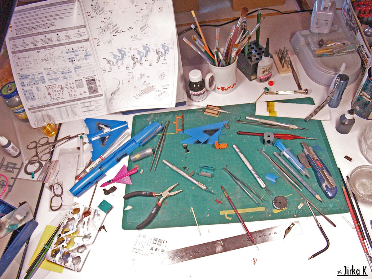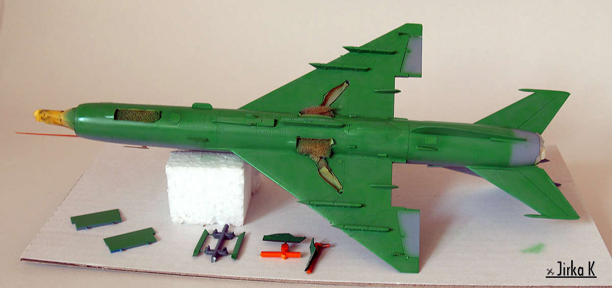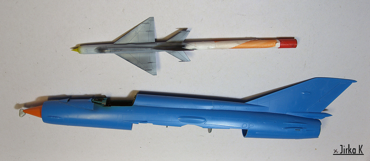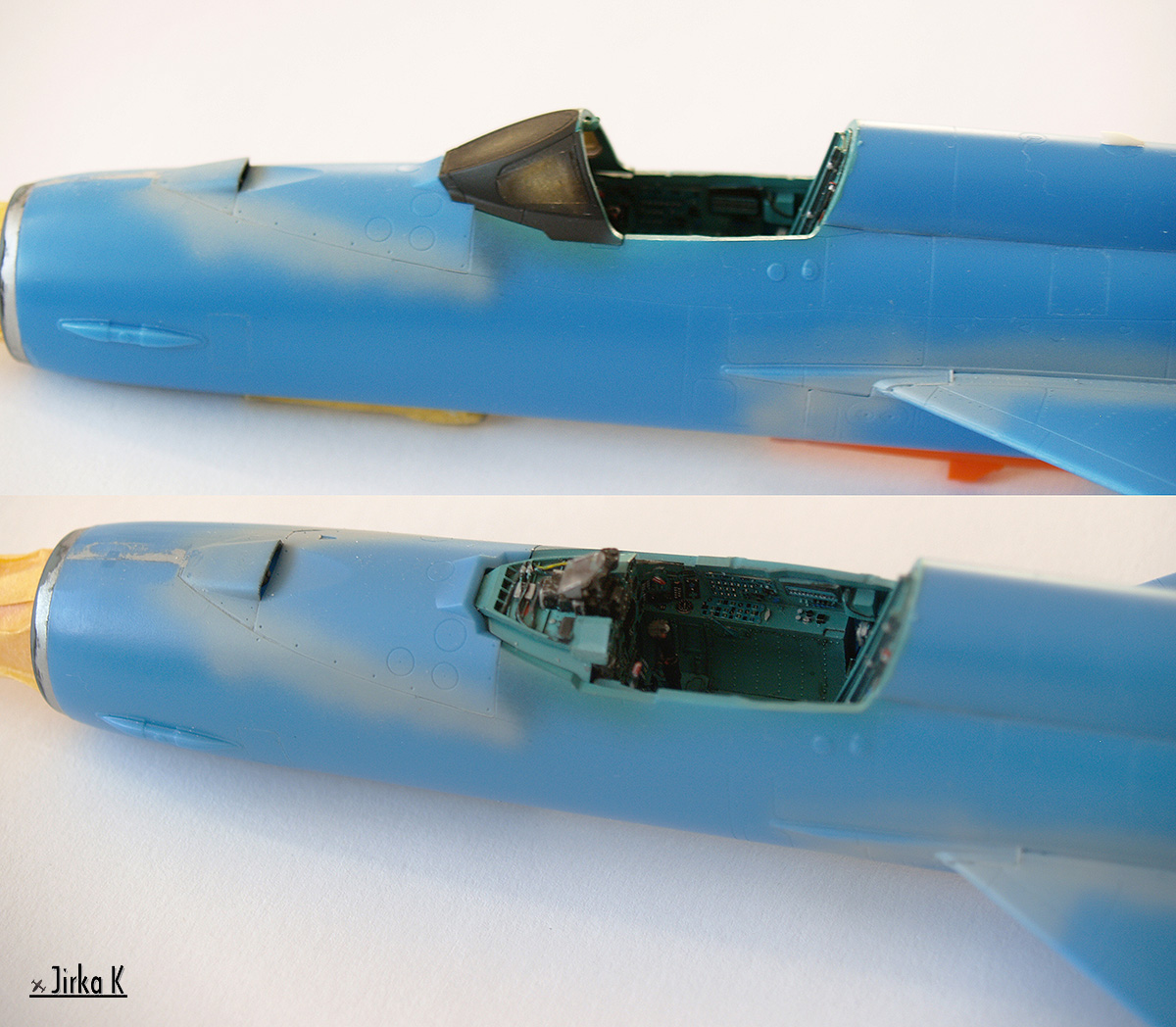 Nechal jsem se přemluvit a poprvé jsem se na patlací seanci pustil do projektu, který jsem věděl, že nemůžu stihnout - 1/48 MiG 21MF Bunny Fighter - tak našlapanou krabici jsem ještě neotvíral; té hromady resinu a plechů jsem se obával, ale nakonec se ukázalo, že to není tak hrozné. Kromě hromady plíšků v kokpitu, ta byla místy otravná.