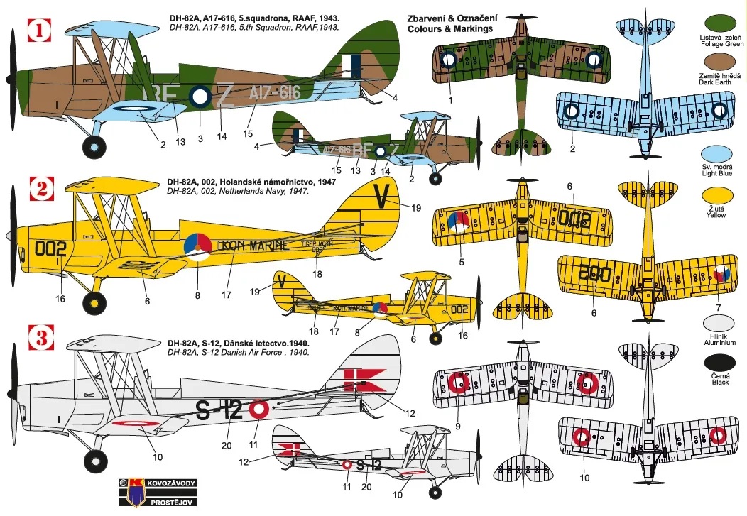 Kamufláže pro tři stroje stejné jako u většího bratra v 1/48.