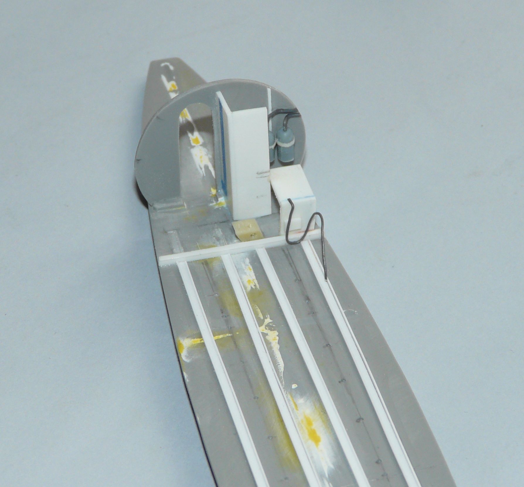 Taky jsem natmelil epoxidovým Tamiya tmelem propadliny na podlaze a trošku jsem tu podlahu prodloužil i dozadu nákladovýho prostoru.