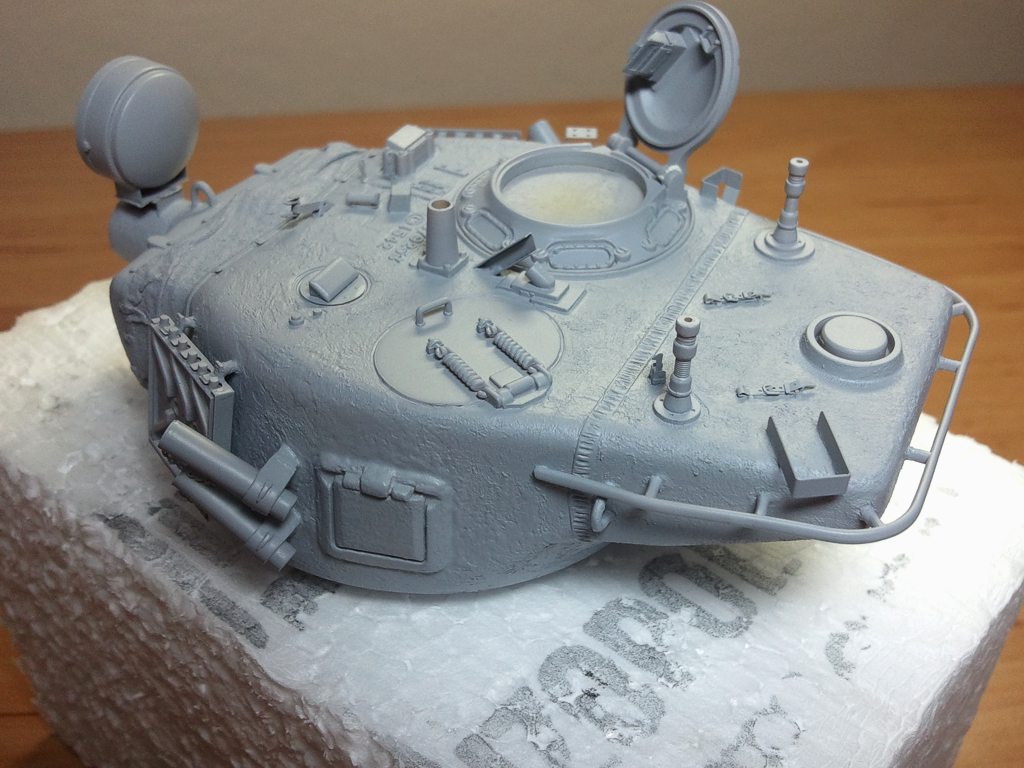 Tak zase o krok kupředu,,celá věž včetně detailů, lampa a poklop a částečně i hlaveň je v surfu. U věže schází dodělat pouze lafeta s kulometem, nějaká ta bagáž a světlo a stříknout vnitřek a vypadá že bude moct do barvy...Ještě bych se rád zeptal, zda poklop střelce, který já mám zavřený má být takto zcela"hladký bez náznaku litého pancíře či ho mám dodělat. N fotkách je to sice lehce hrubé, tak nevím...zda dodělat či nechat. Fotky přikládám. Tak a ted se přesunu na spodek tanku,,na vanu,,lepty,,litej pancíř, detaily a pak surfík... a nesmím zapomenou na kola se zavěšením...to asi udělám jako první.