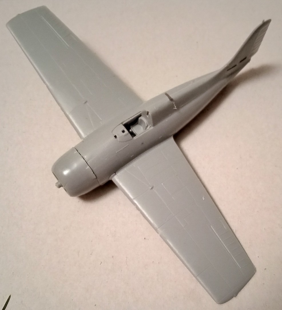 Tvarově to je asi nejslabší Wildcat od Hobby Bossu. Motor na sucho nasazen. Trup v kupě.