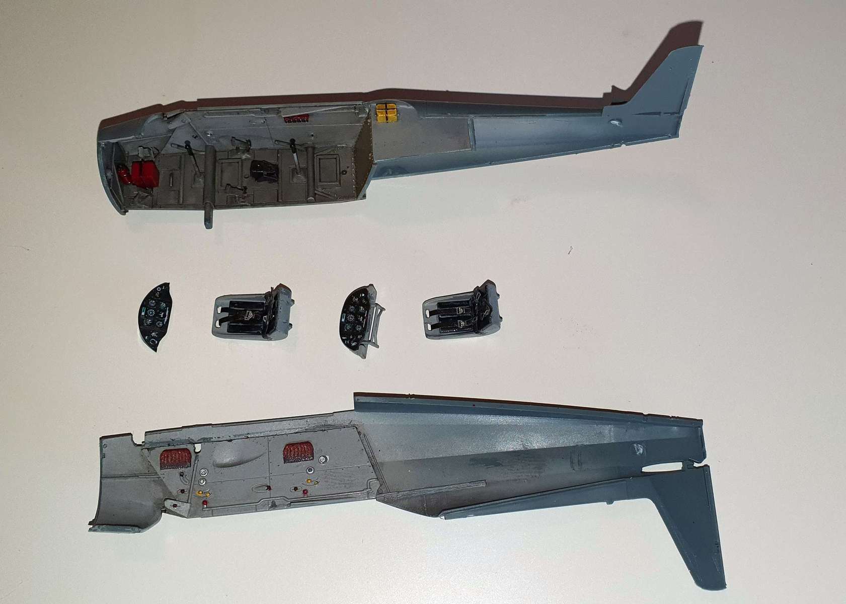 Kabinky - je třeba udělat zevnitř zadní části překrytu dvě šprušle (návod na to neupozorňuje). Šprušle jsou zevnitř naznačeny rytím.