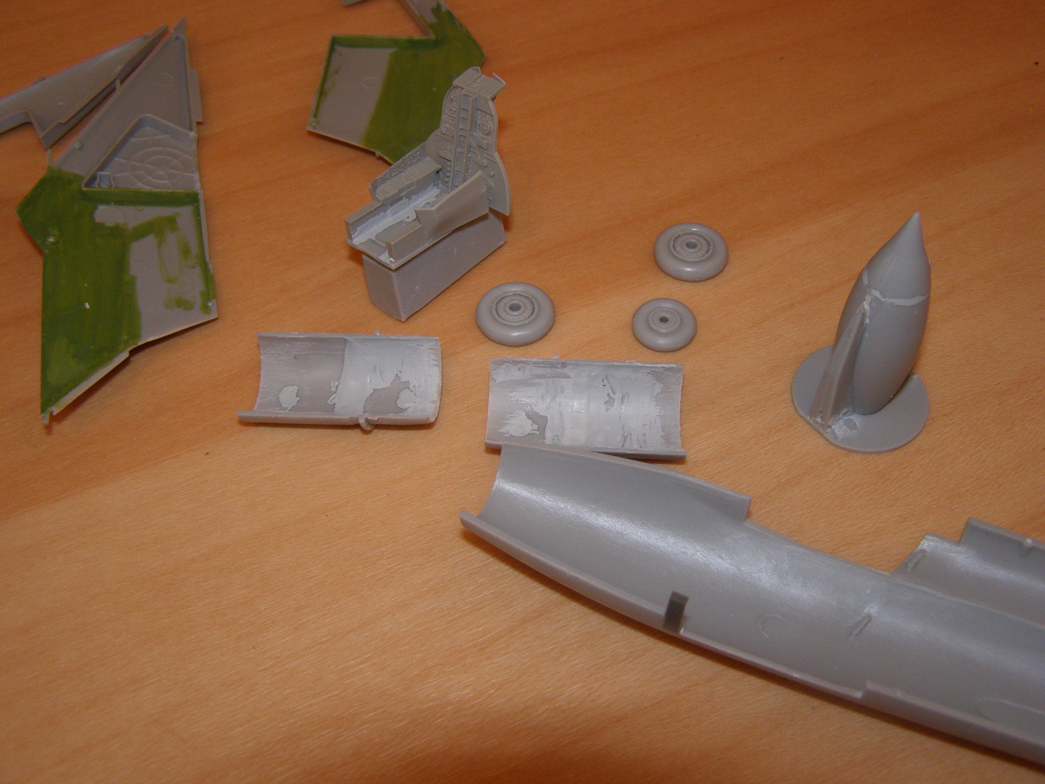 Patriku, zmrvit to fakt nechci, pro všechny mé následovníky jedna rada:na dílech trupu je v otvorech pro křídal drobný otřep bránící usazení křídel a vzniká tma v přechodu obrovská díra, projeďte otvory zevnitř skalpelem a tmelení bude minimální