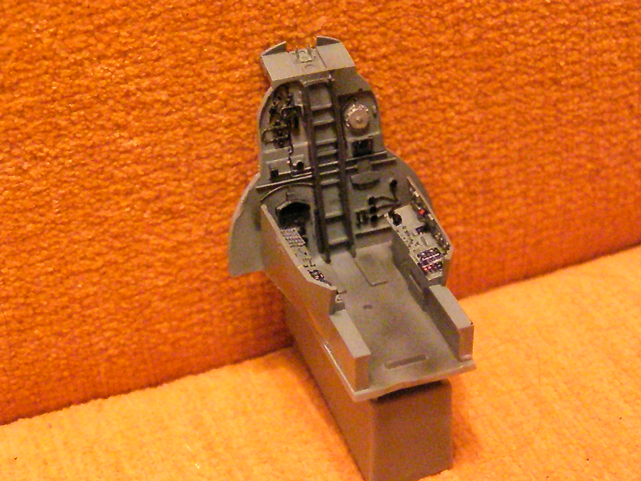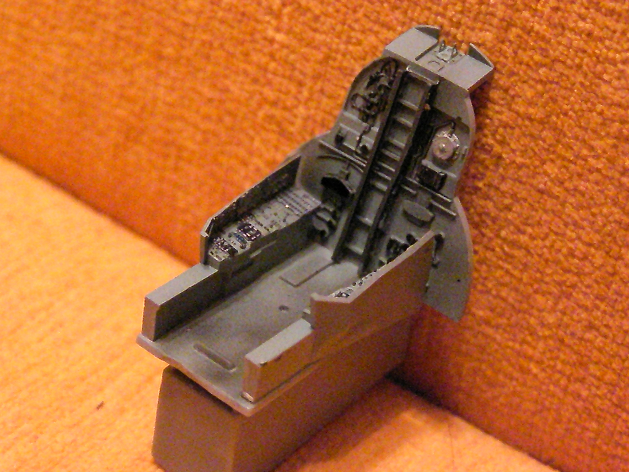 Po dlouhé době jsem se dostal k lepení, takže menší progres. Přepážka za pilotem bude po trošce síly sedět. Použitý plast se strašně špatně lepí dohromady, překvapuje mě, jak krom přechodu křídlo trup není prakticky potřeba tmel.