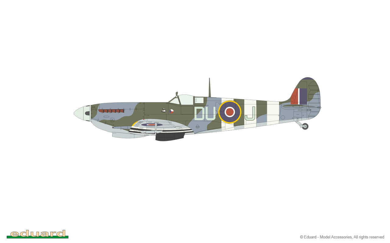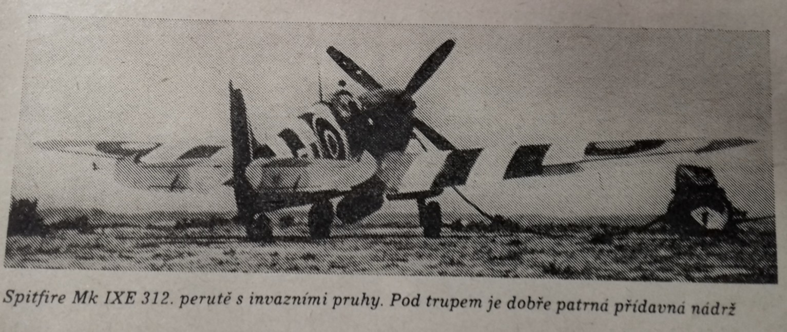 "Během invaze do Normandie se mohli českoslovenští piloti poprvé seznámit se Spitfiry Mk.IX vybavenými křídlem typu E. Důvodem k přezbrojení byla