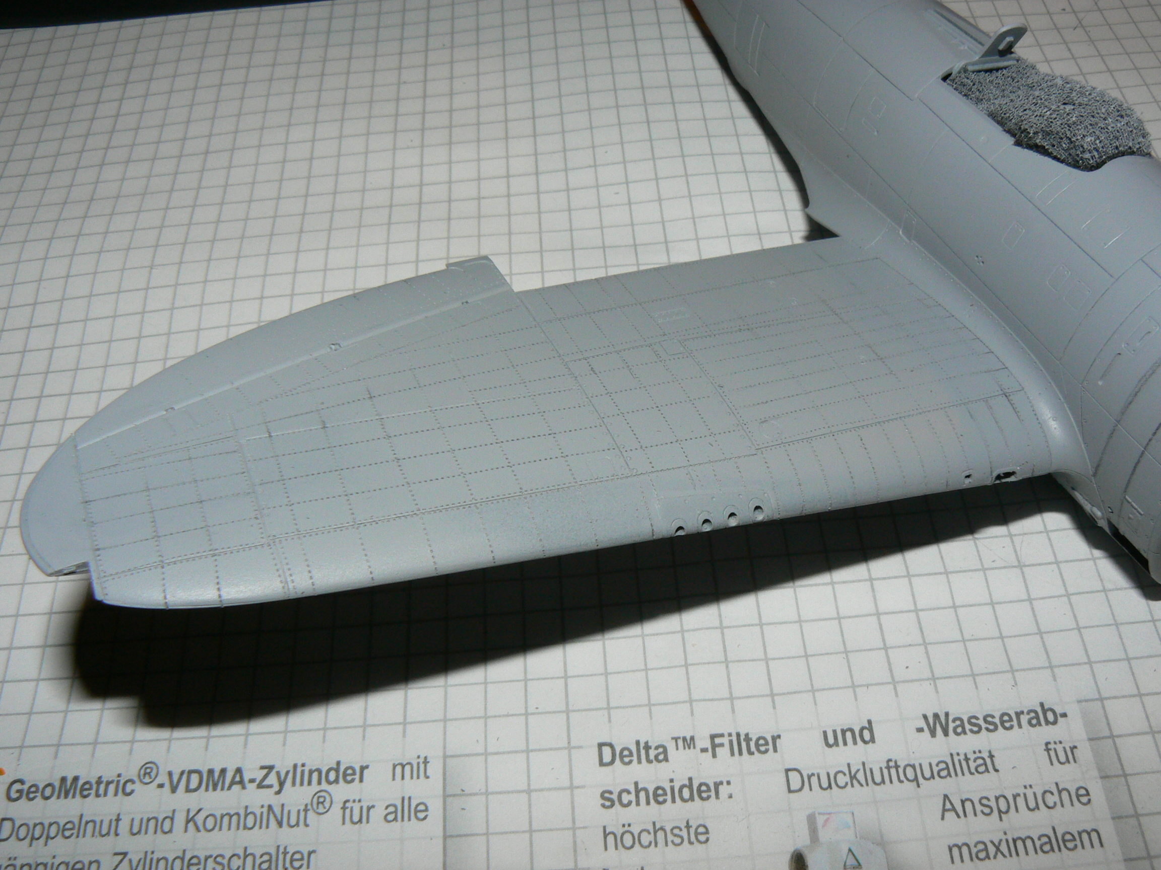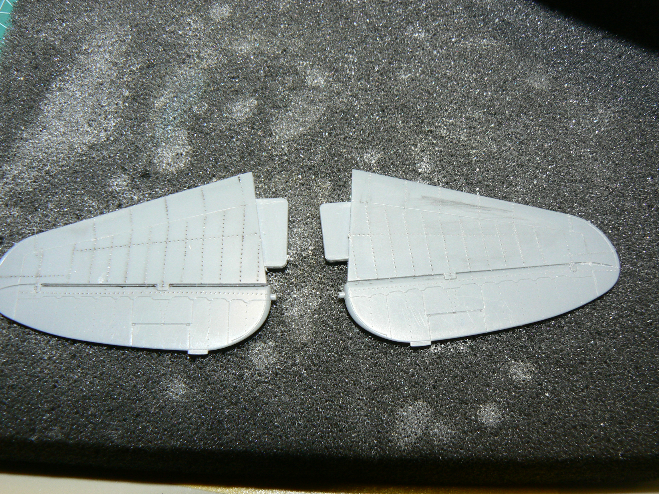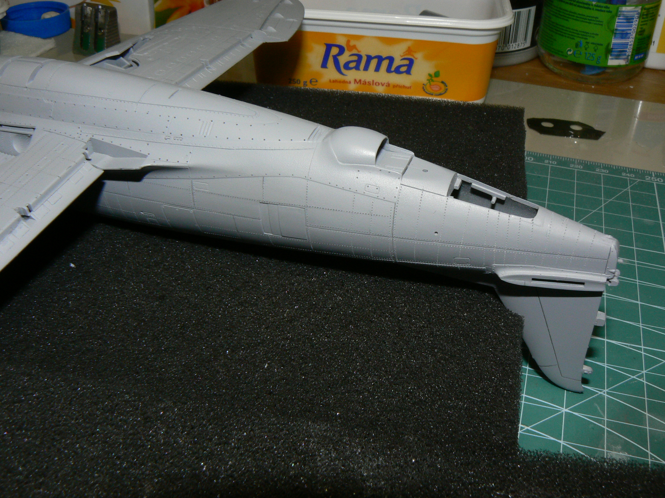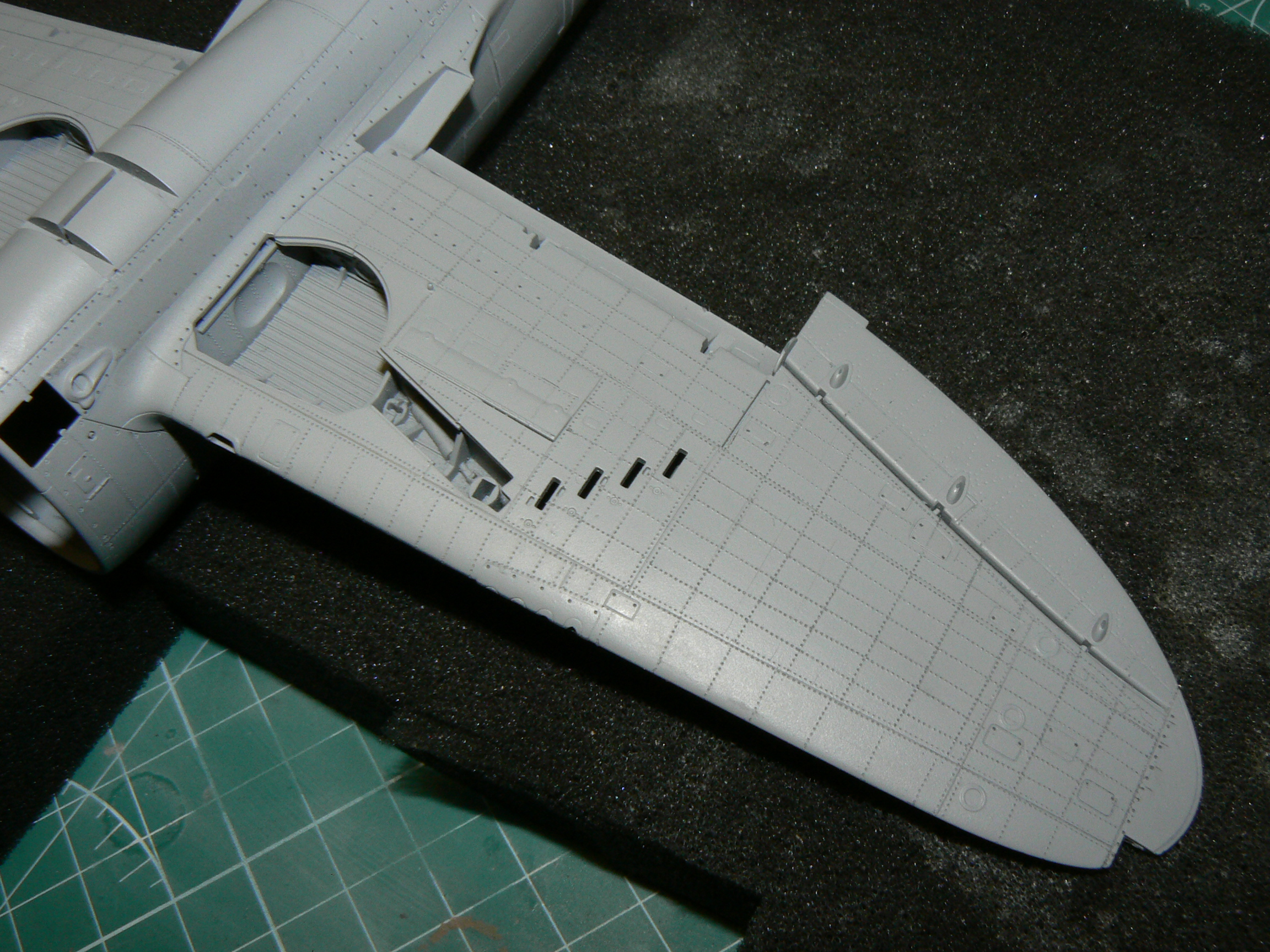 Na první nejtování to máš pěkný.Já osobně nýtuju na holej plast,před nástřikem Surfu.Ale takhle to vypadá taky pěkně.Taky jsem zrovna nýtoval Thunderbolta od Tamky.Bude celostříbrnej.Držím palce do další stavby.