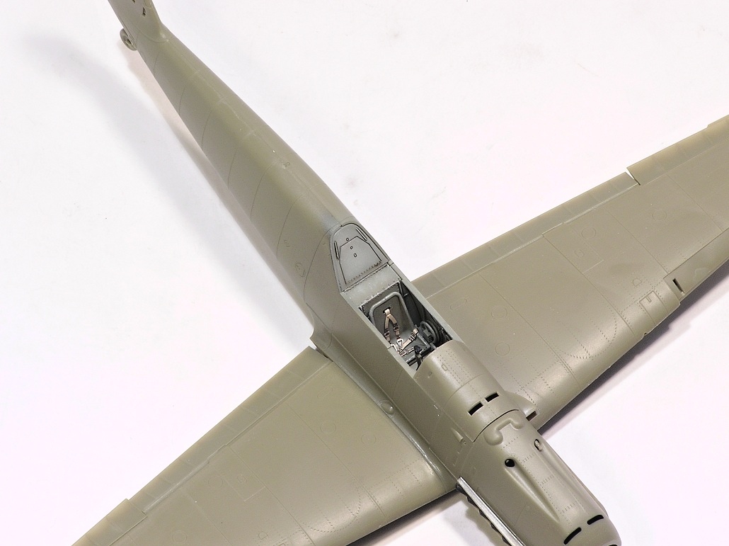 Tak pokračujem.Mám hotový kokpit a model je viac menej zlepený.Teraz to nechám do zajtra preschnúť,spoje jemne prebehnem šmirglom a môže sa ísť na kamo