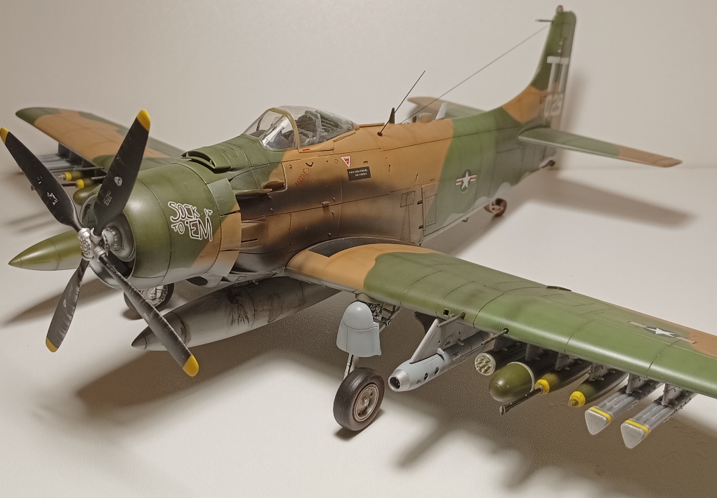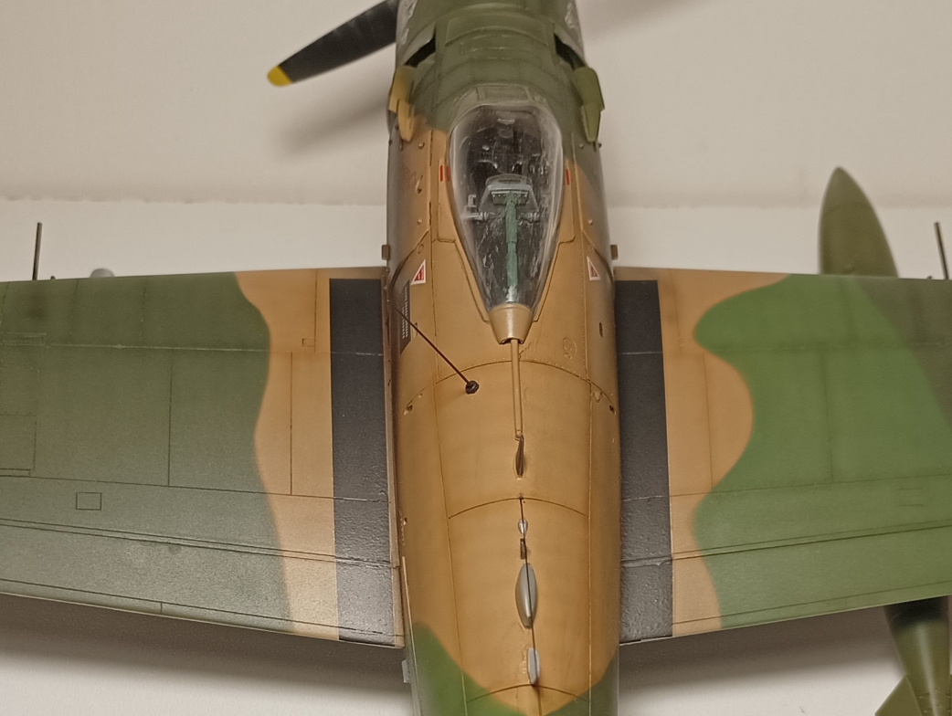 Tak cíl účasti ve skupinovce splněn. Nejvíc mě sejří zamlžená kabinka a poněkud tmavší šedá na spodku. Vrch je AK RC dark earth s bílou gunze a RLM 82/83 gunze céčko. Nějaké stíny, oleje a tak. Celkem se mi ty odstíny na SEA camo líbí.