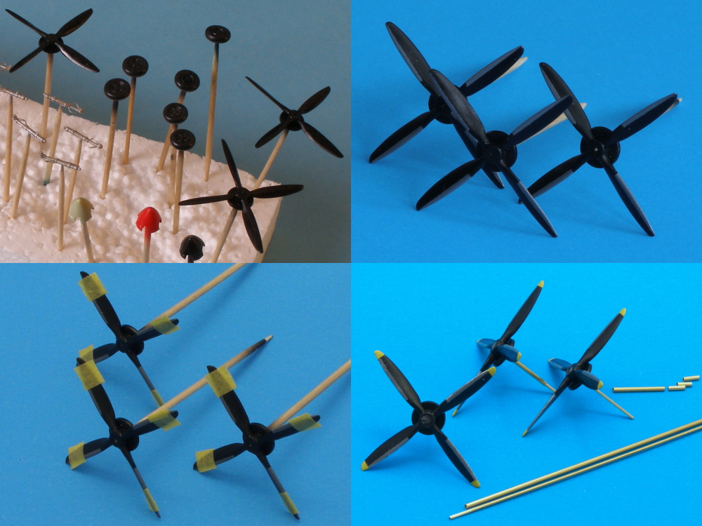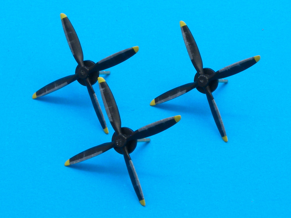Spity sú v stave niekde pred washom. Medzitým pripravujem vrtule a podvozky.