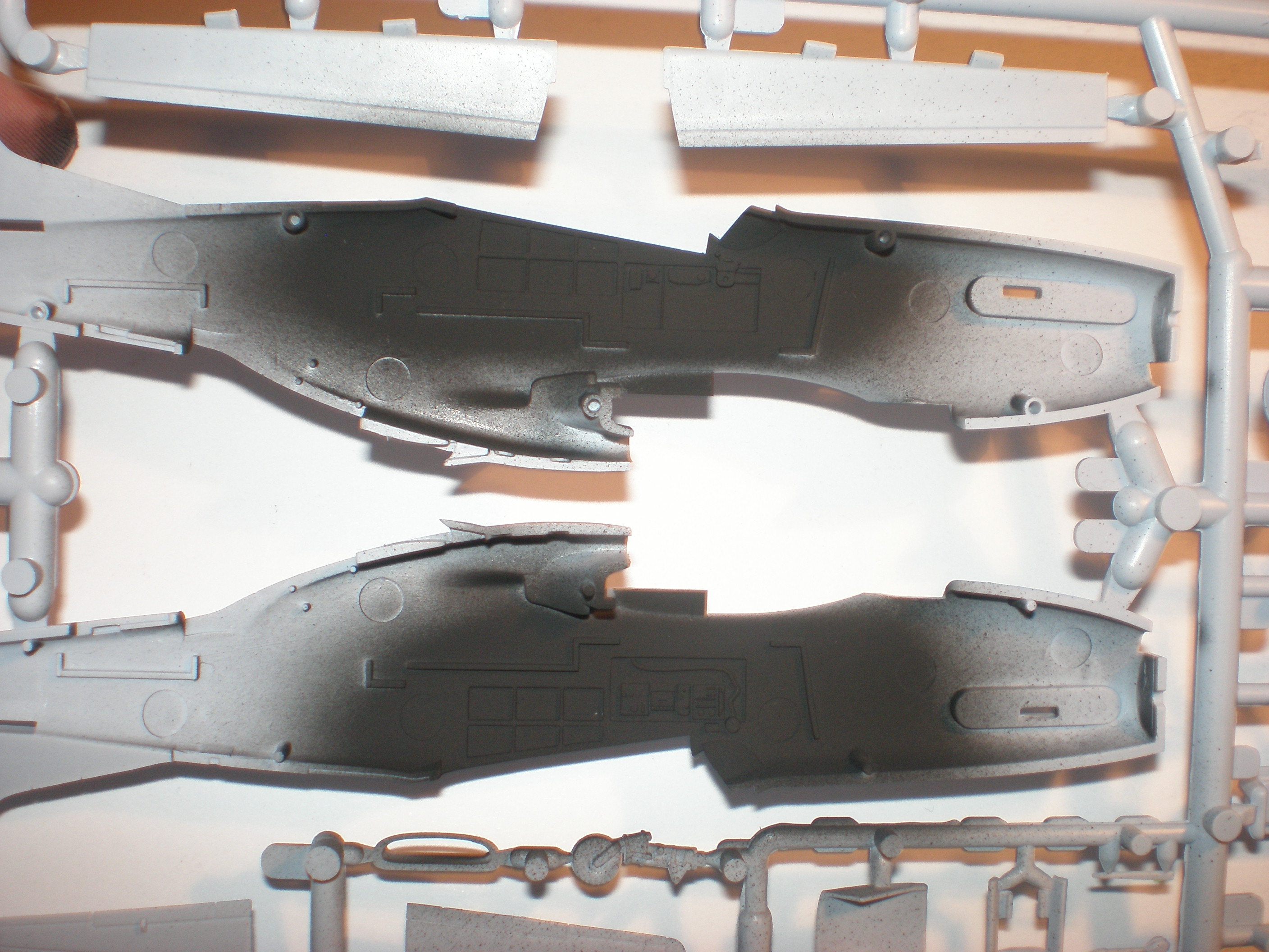 Stavba Hellcatu sa blíži ku koncu a ja som sa dnes teda pustil do ďalšieho modelu a opäť to bude američan. Marking bude z krabičky teda stroj Spurgeona Ellingtona, ktorý bojoval Talianskom Ramiteli. Dnes som teda nastriekal kokpit tenkou vrstvou čiernej farby aby sa mi potom po prestriekaní zelenou vytvorili tiene takže dúfam že to víjde a bude ich tam potom aj vidno. Tento týždeň by mi mali prísť ešte chýbajúce farby medzi nimi aj zelená do kokpitu čiže zatiaľ zamakám na prístrojovke a kokpit nastriekam potom keď príde farba.