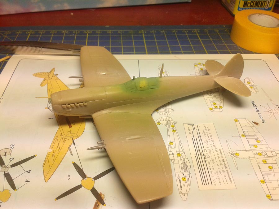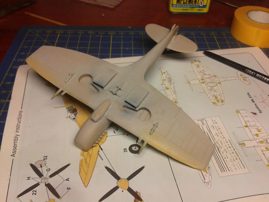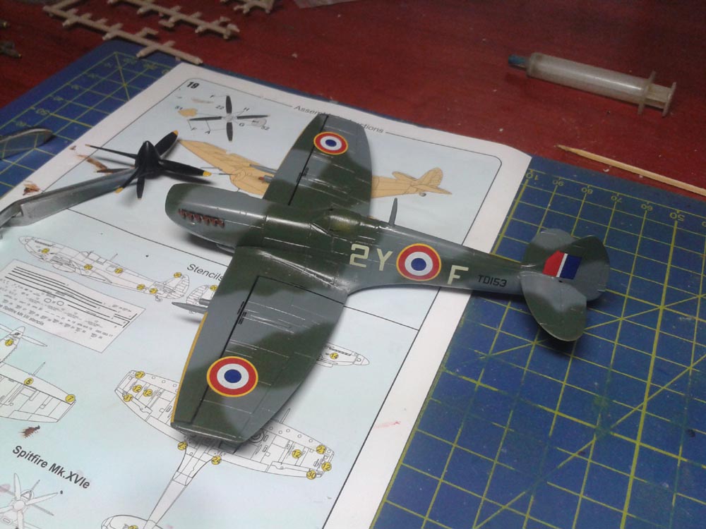 Momentálně šlo všechno ze stolu a řekl jsem si, že začnu odznovu něco co mám šanci dokončit. Spitfire Mk.XVI je dobrá volba si myslím. Budu dělat Frantíka 2Y-F. Závěsníky jsem našel ve šrotáku spolu s nádrží a pumama 250lb a 500lb, tak je tam dám když většinou tahle verze byla spíše používaná na bitevní útoky než na stíhání.