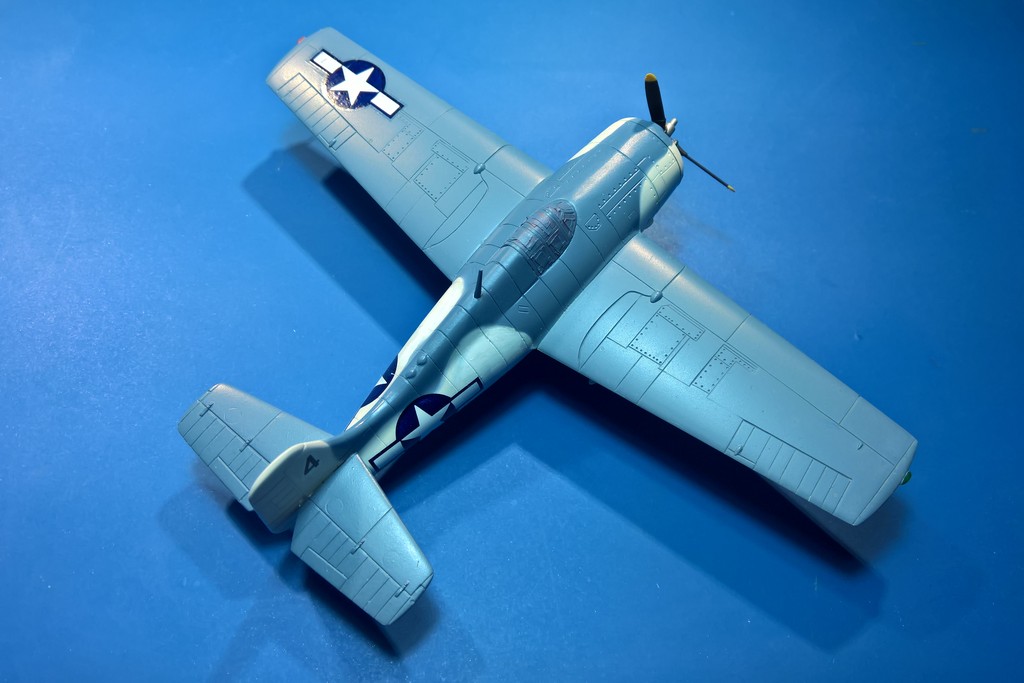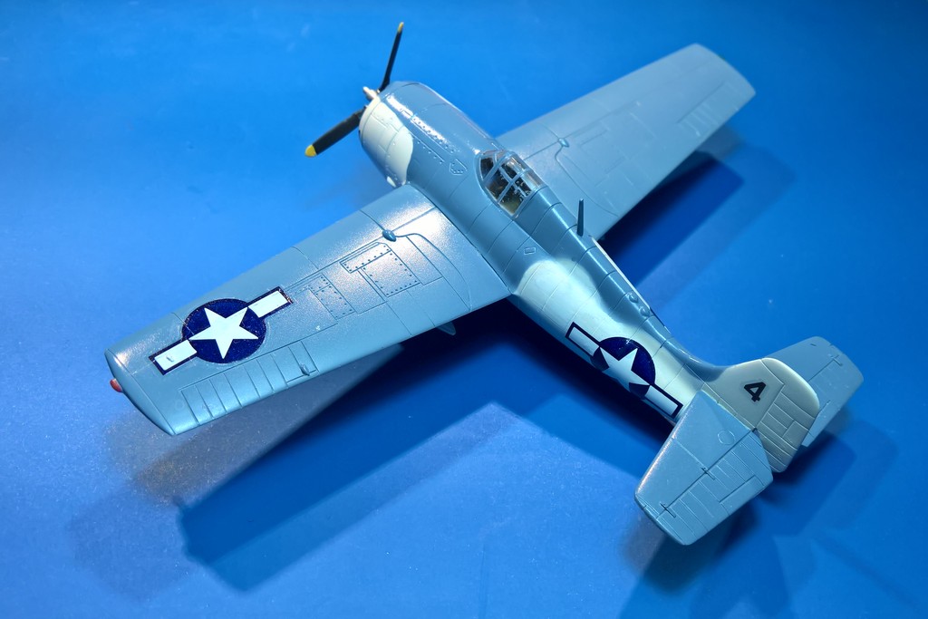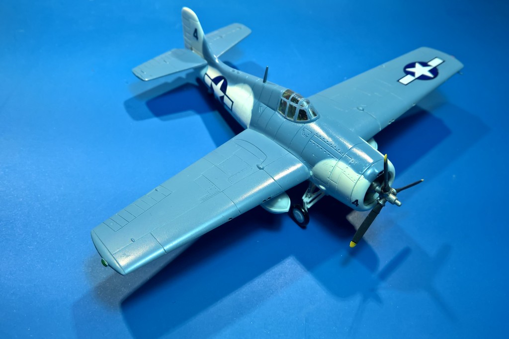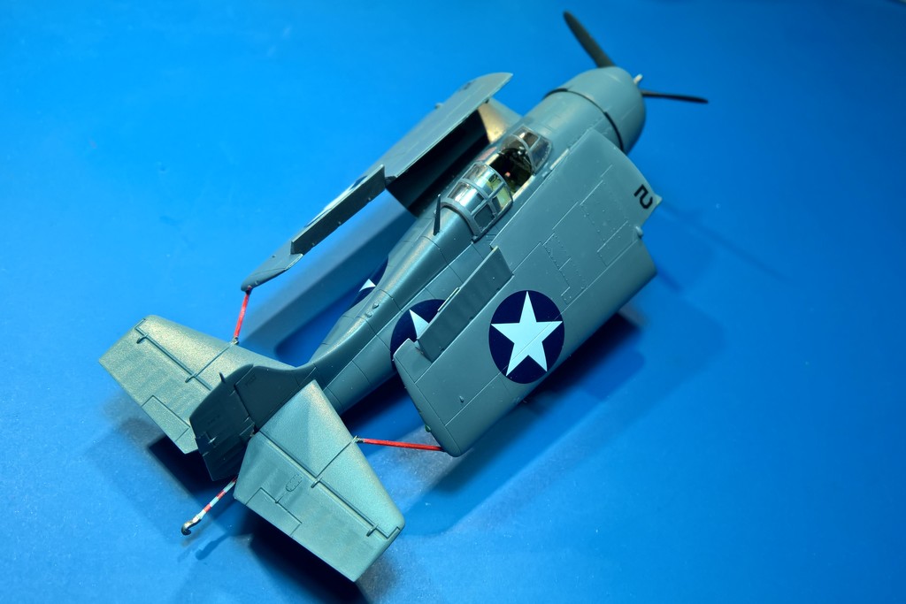 Tak, buď hodně dopředu jako třeba u F4F-4 a nebo svisle jako u FM-2 beru to vůči ose v letu.