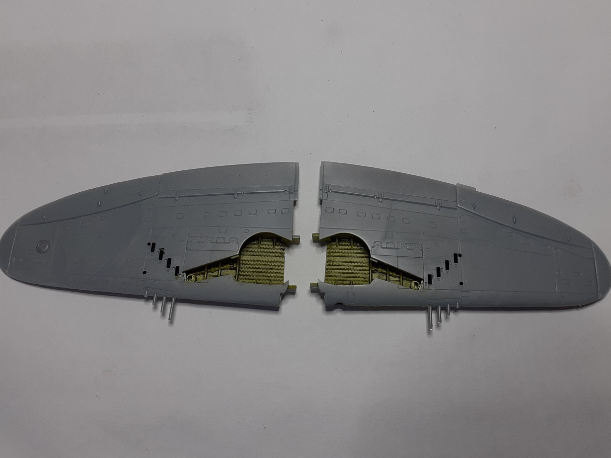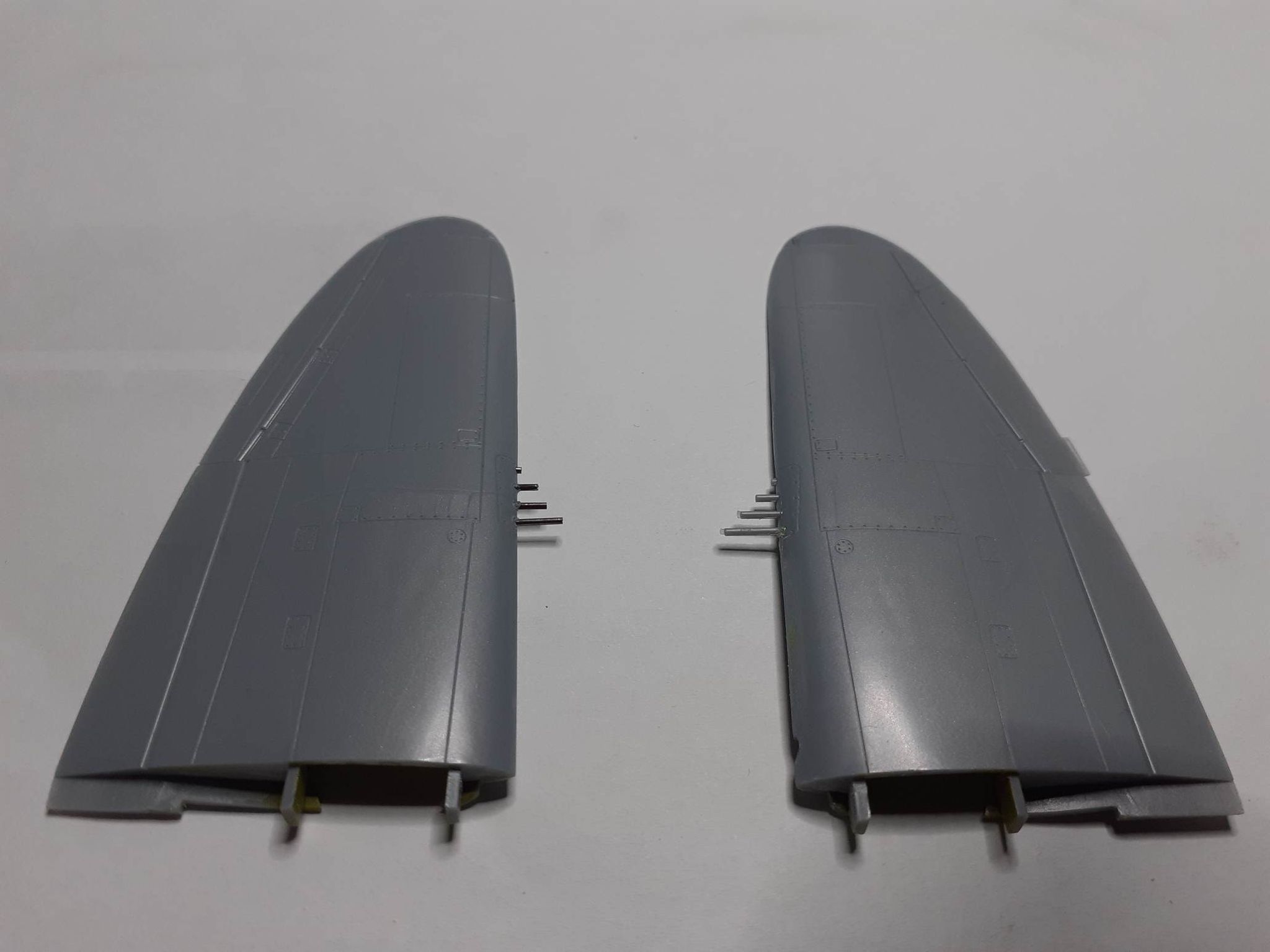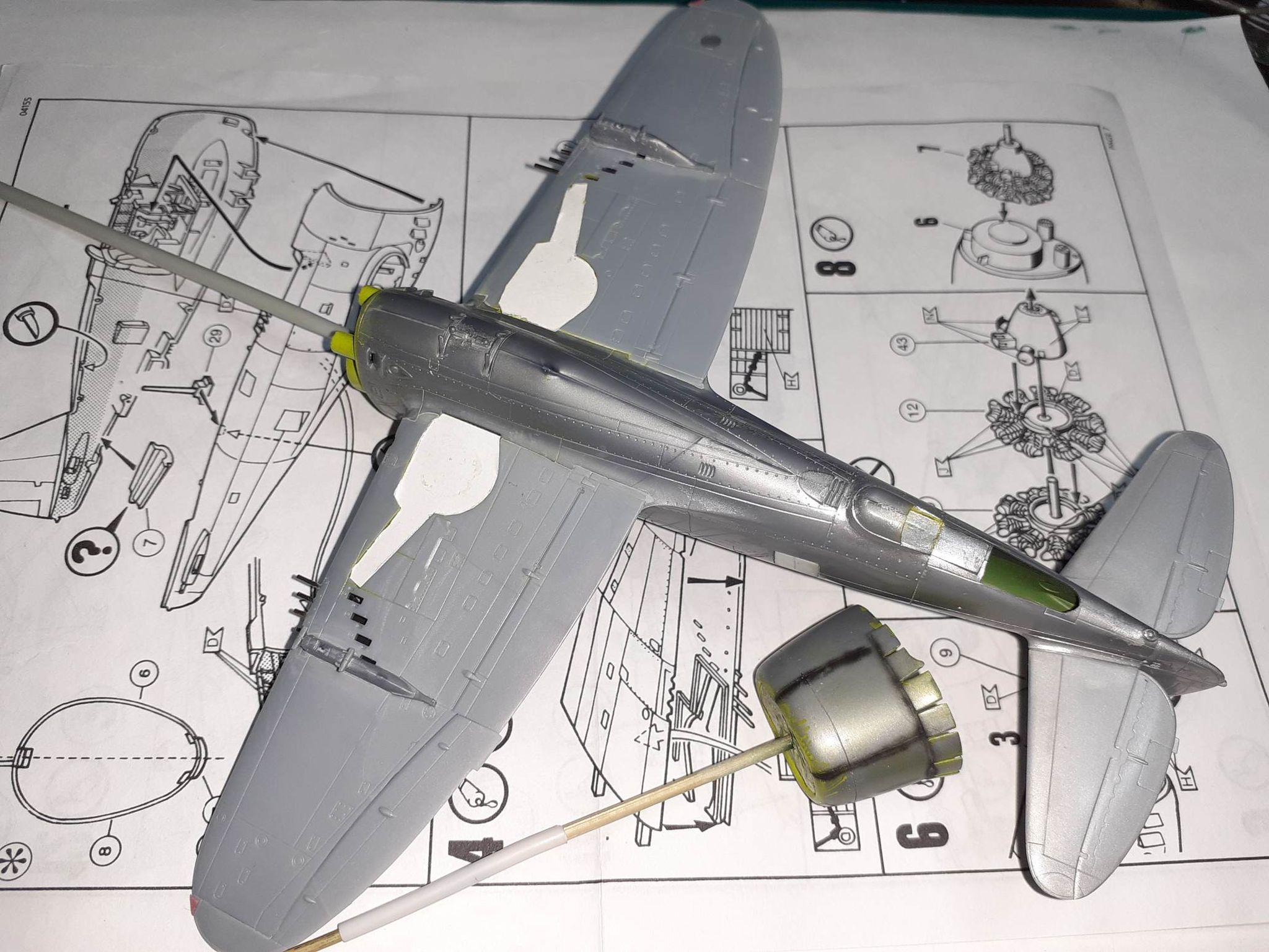Krídla zlepené. Až to poriadne preschne odrežem hlavne guľometov, vyvŕtam dierky a nahradím umelohmotné hlavne hlavňami z injekčných ihiel.