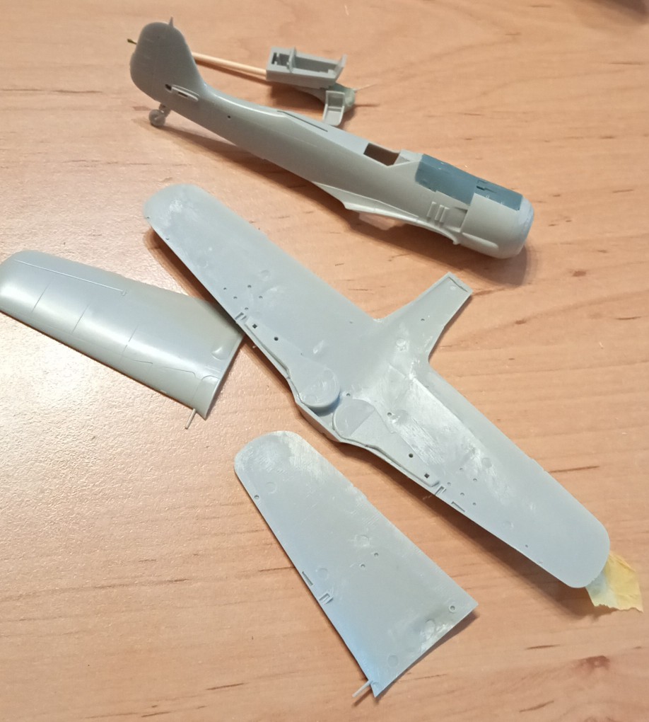 Výměna krytu proběhla bez ztráty kytičky. Bude z toho vyšší verze Fokáče s kulatým překrytem. A-5 bude také. Vzal jsem na to druhou krabicí od Hasegawy. Tedy bude dvojstavba.