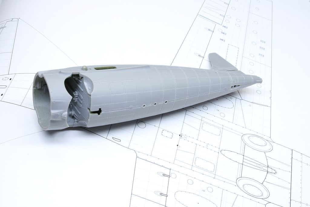 Cílem dnešní hodinky u stolu je nejprve narýt linku ve spoji trupu na spodku a onýtovat trup. Ideálně pak ještě nalepit křídla, snad to výjde.