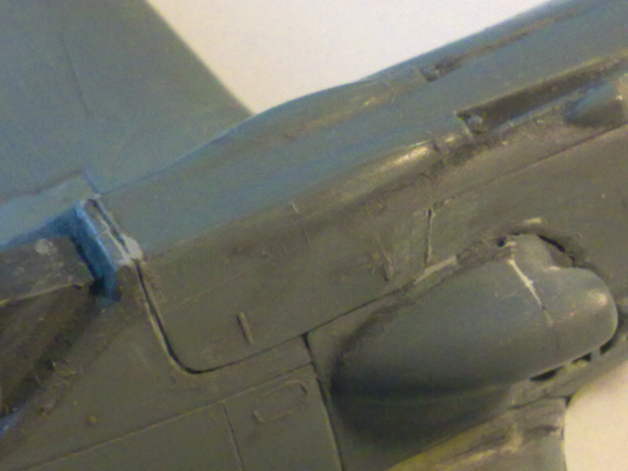 Takže včera som vytmeli kryt trupových guľometov a dnes nanovo naryl. Taktiež som sa postáral o nábežnú hranu. Ešte ostáva linka na spodnej strane krídla + dorytie na motorovom kryte.